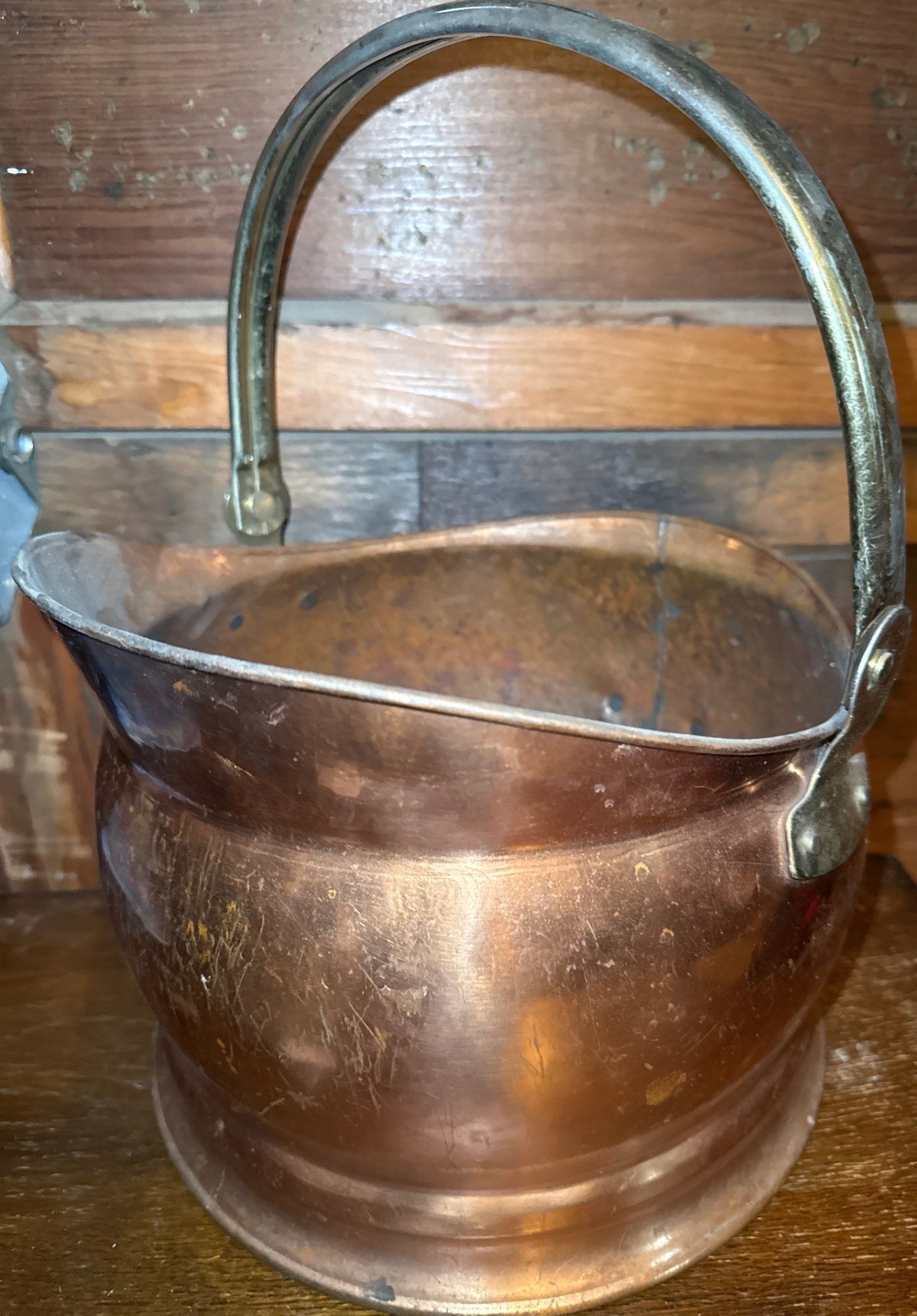 20th Century Copper Helmut Coal Scuttle- Victorian English Quality Fireplace Basket