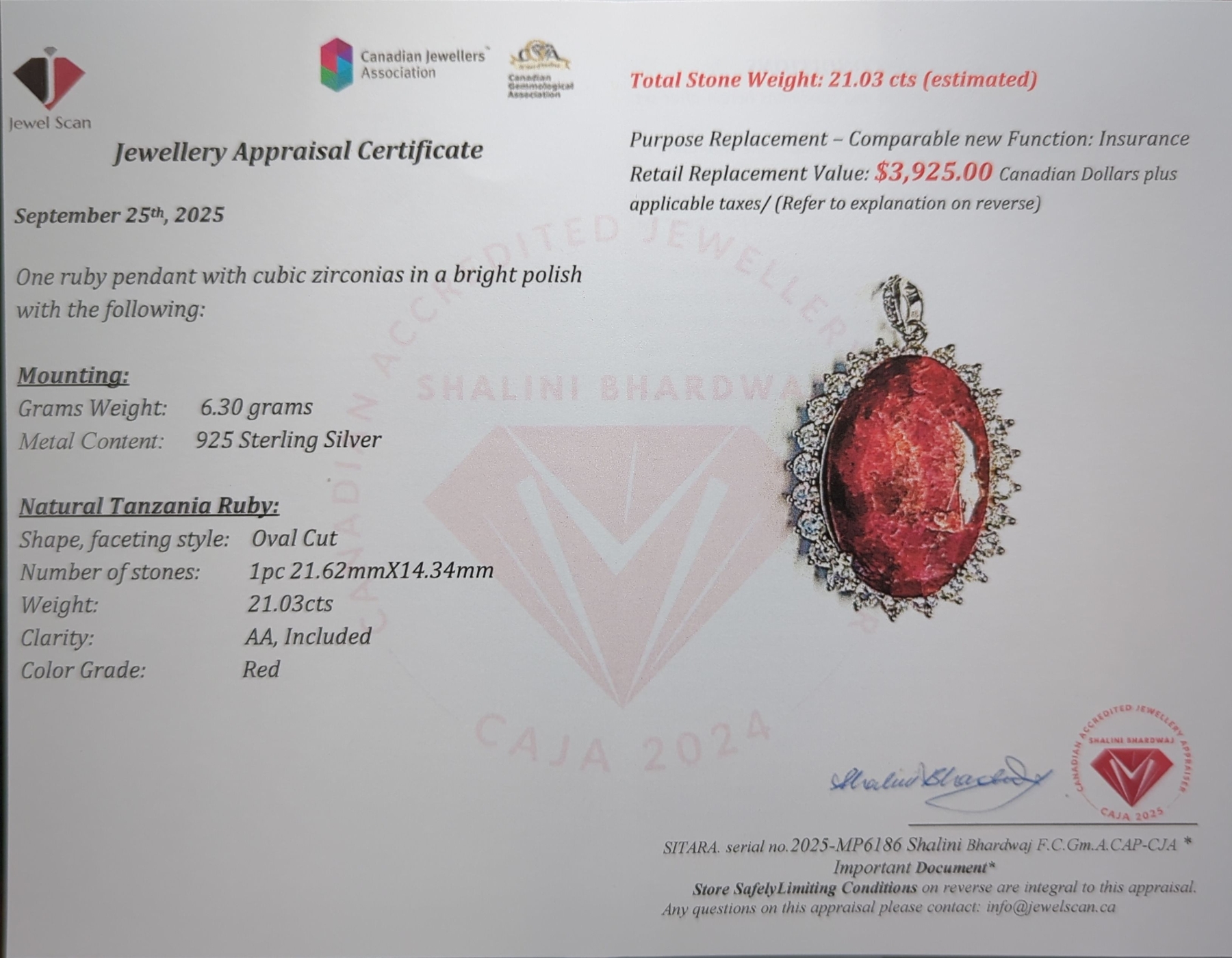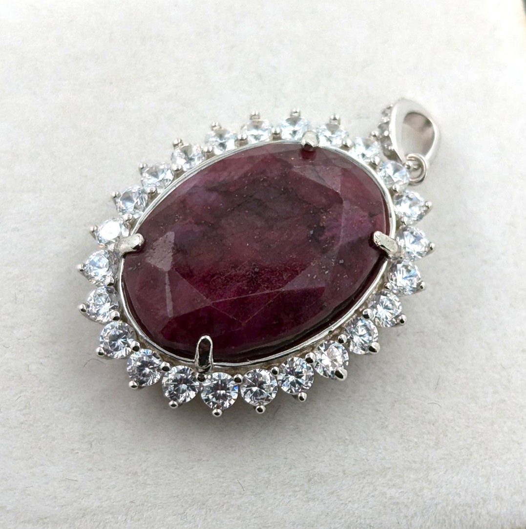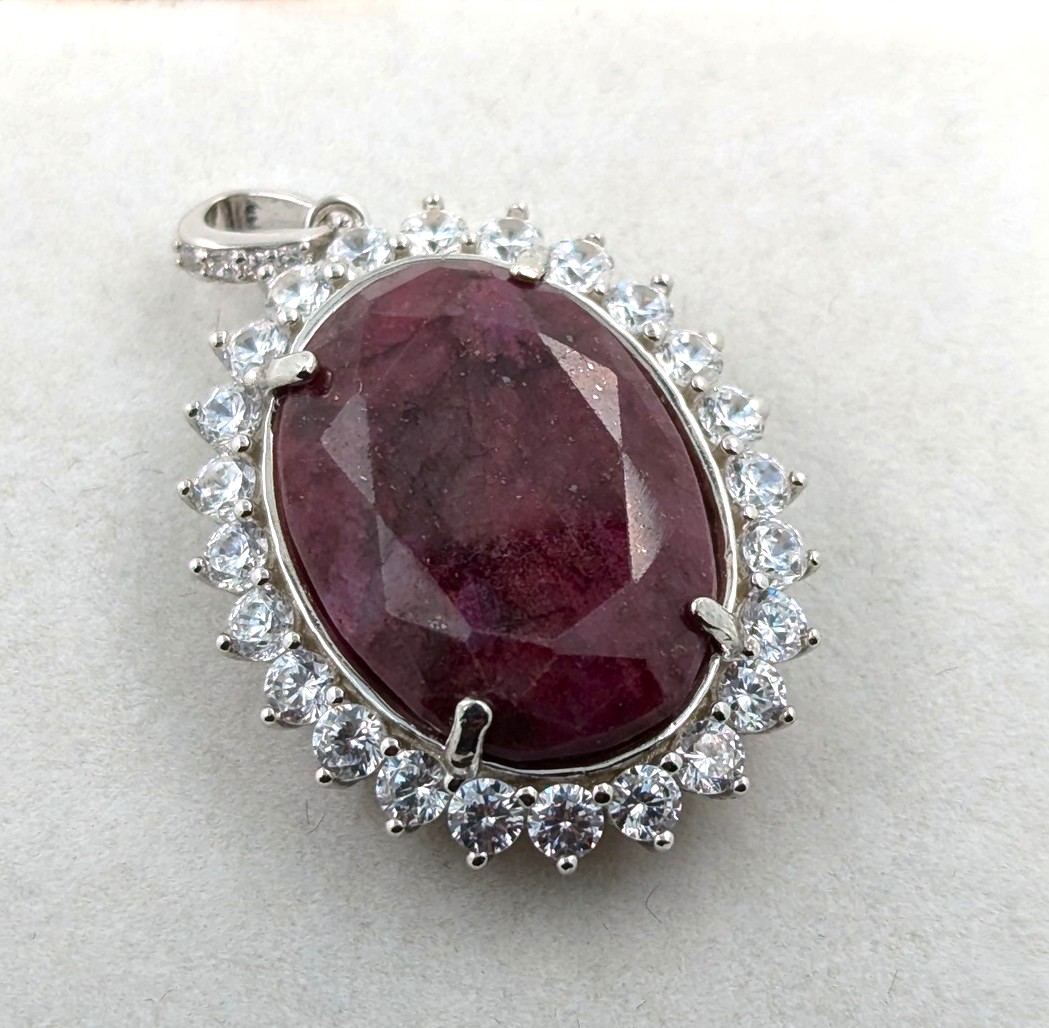 21.03 ct Certified Silver Ruby gemstone Pendant ($3,925 Appraisal)