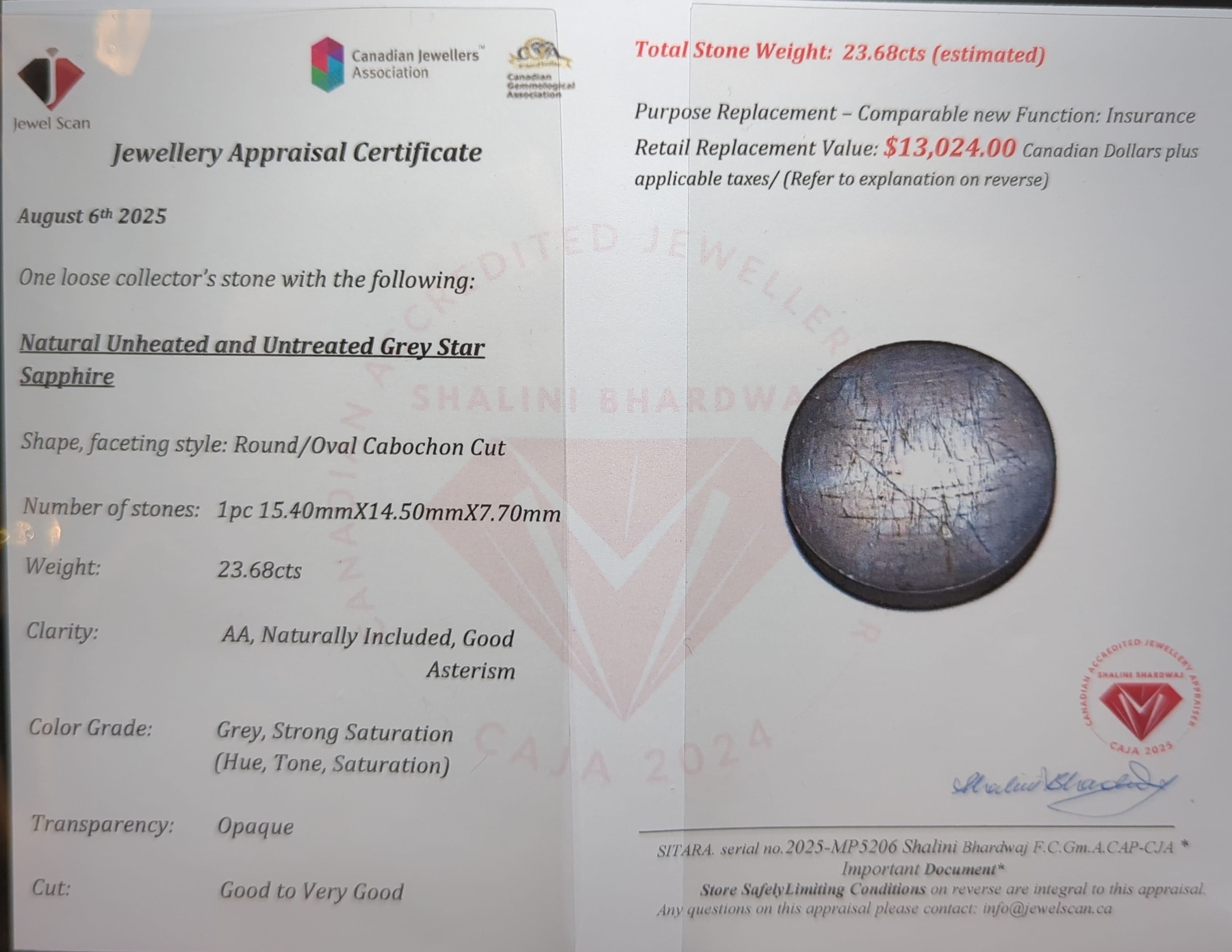 23.68 ct Certified Grey Sapphire gemstone Untreated ($13,024 Appraisal)