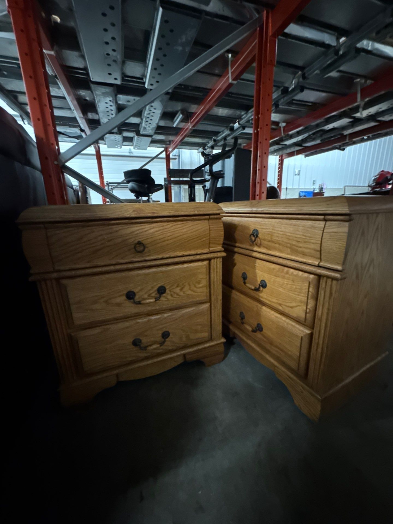 26 inches long, 17 inches wide by 29 inches high. Three drawers, set of two.