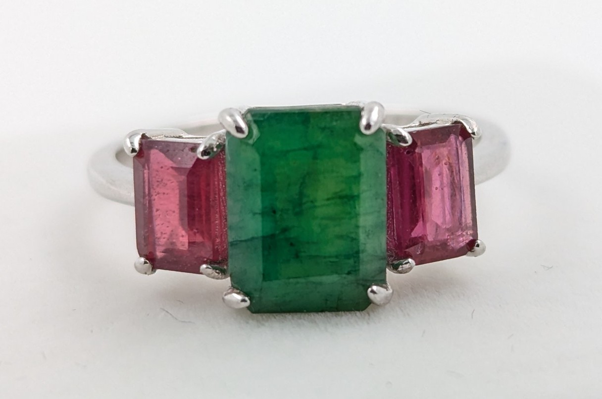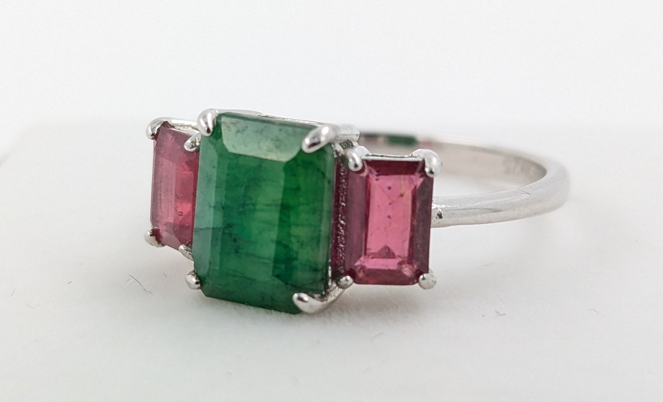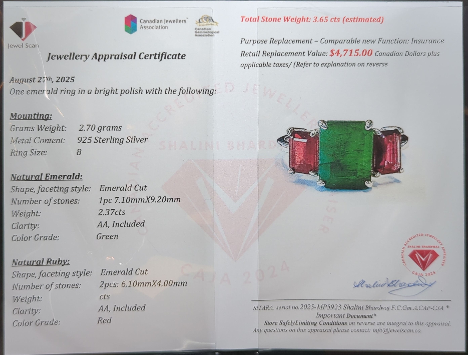 3.65 ct Certified Silver Emerald Gemstone Ring ($4,715 Appraisal)