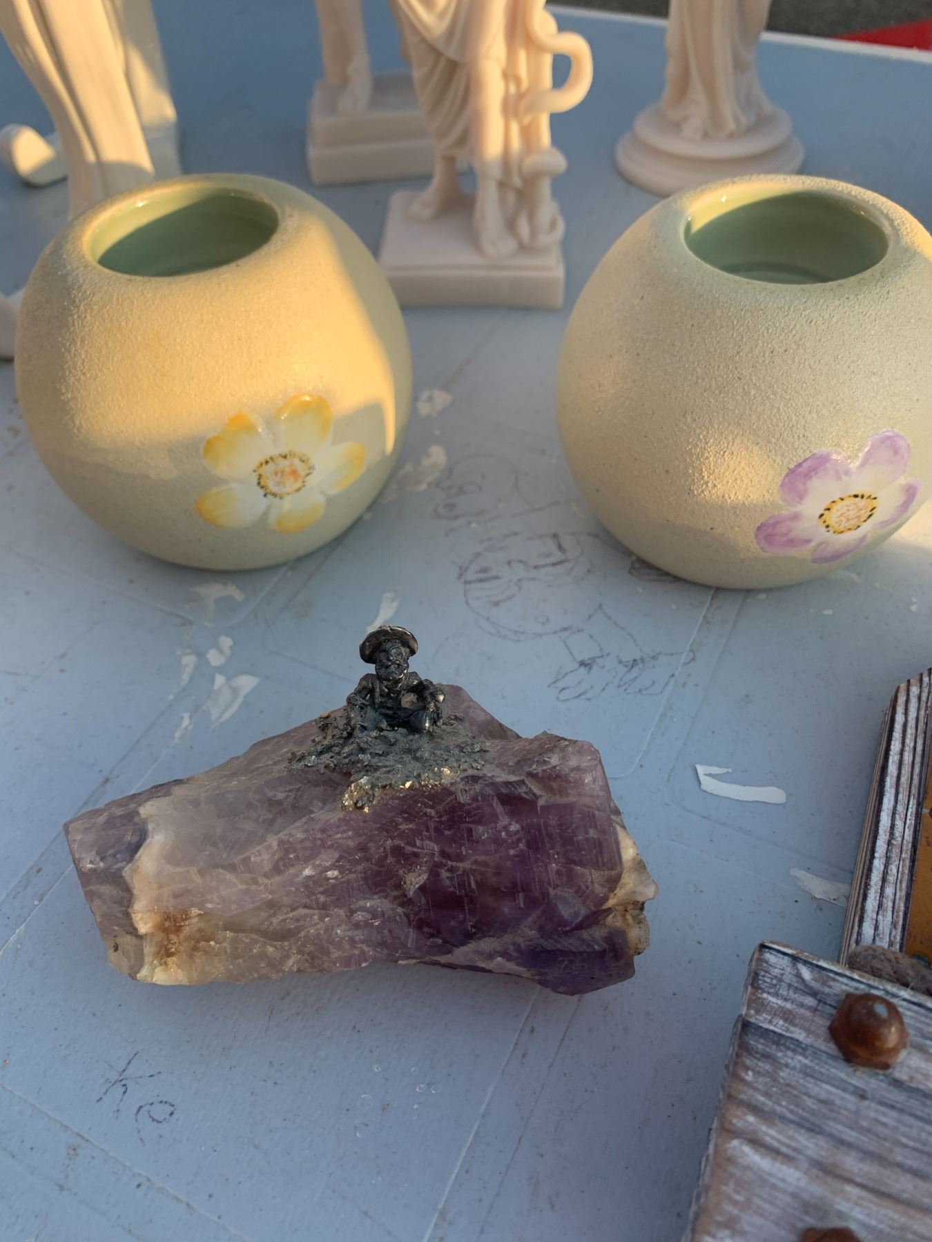 3 Alabaster Figurines, Amethyst Gold Miner, Cowboy Key Holder, Tealight holders