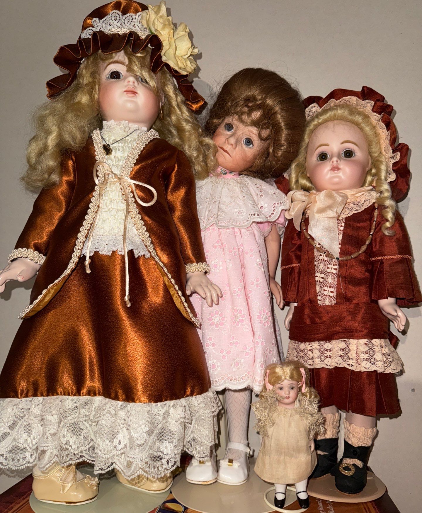 3 Bisque Head Dolls w/ Sleep Eyes Open Mouth & Kid Body 12T