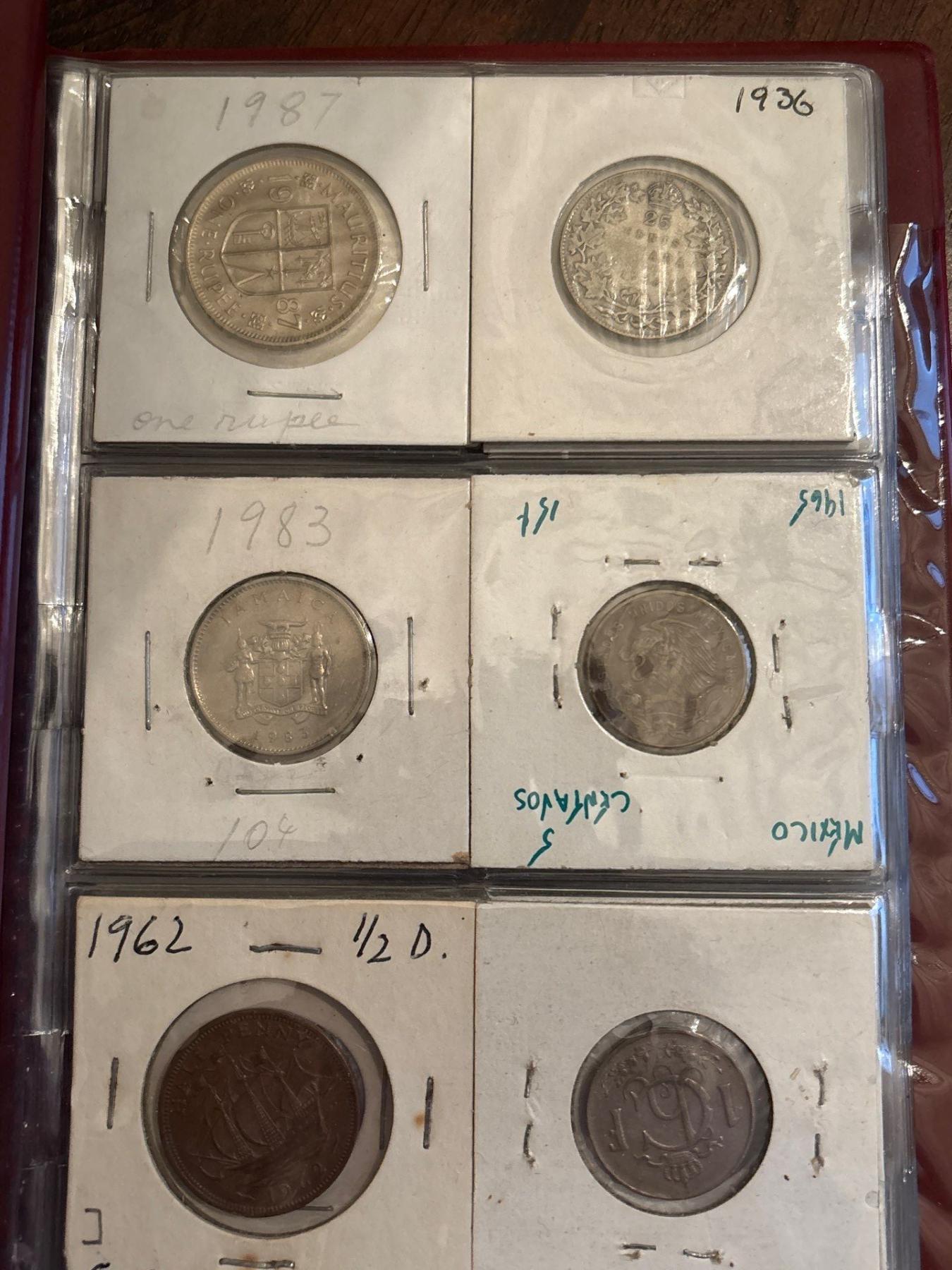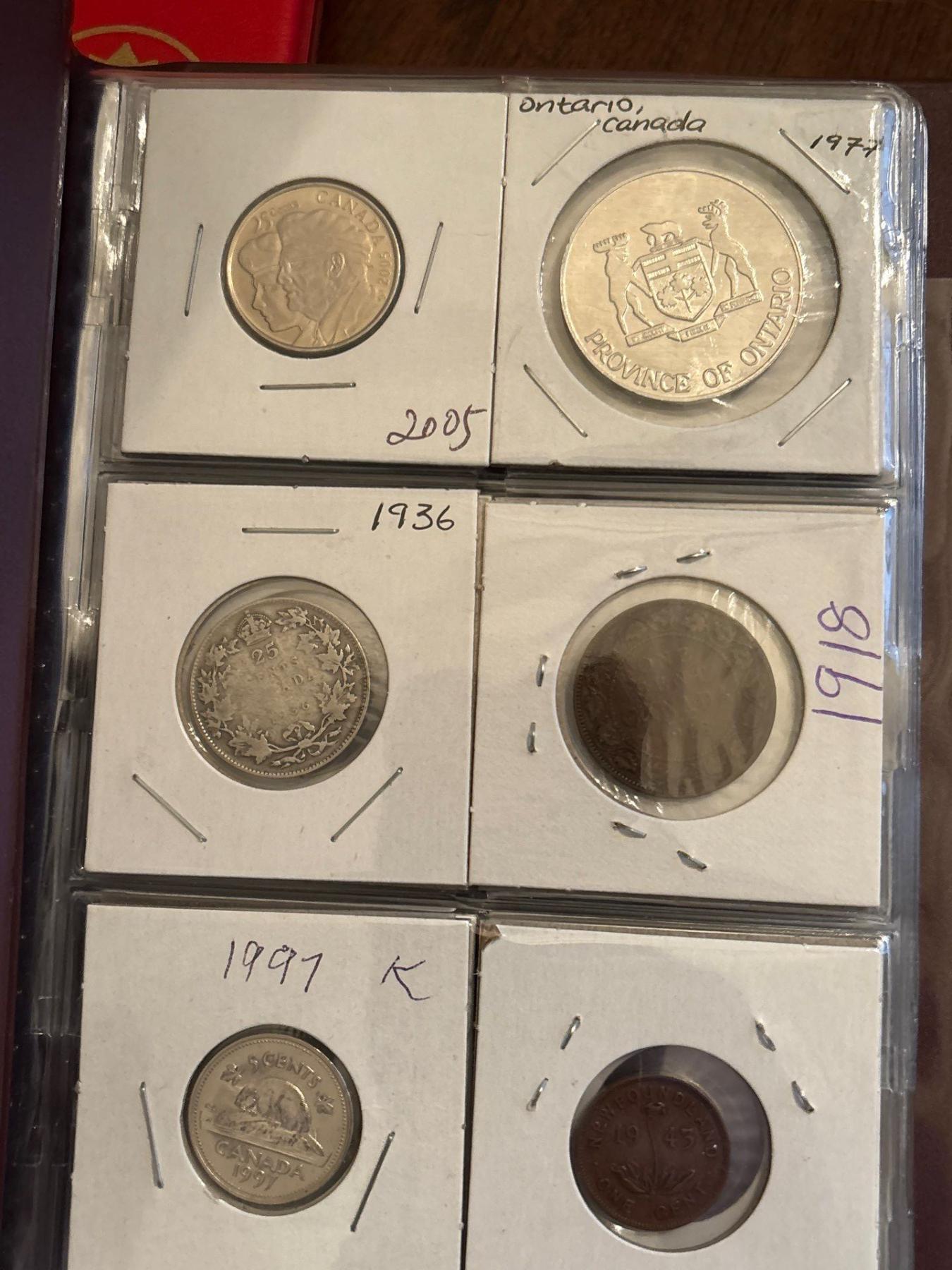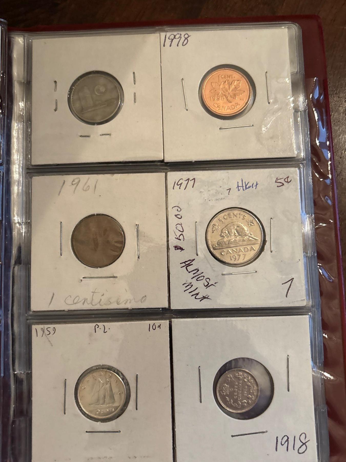 3 Coin Collecting Books with Several Canadian & world Silver Coins .