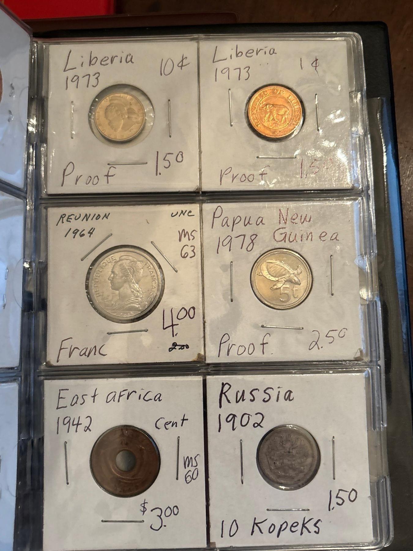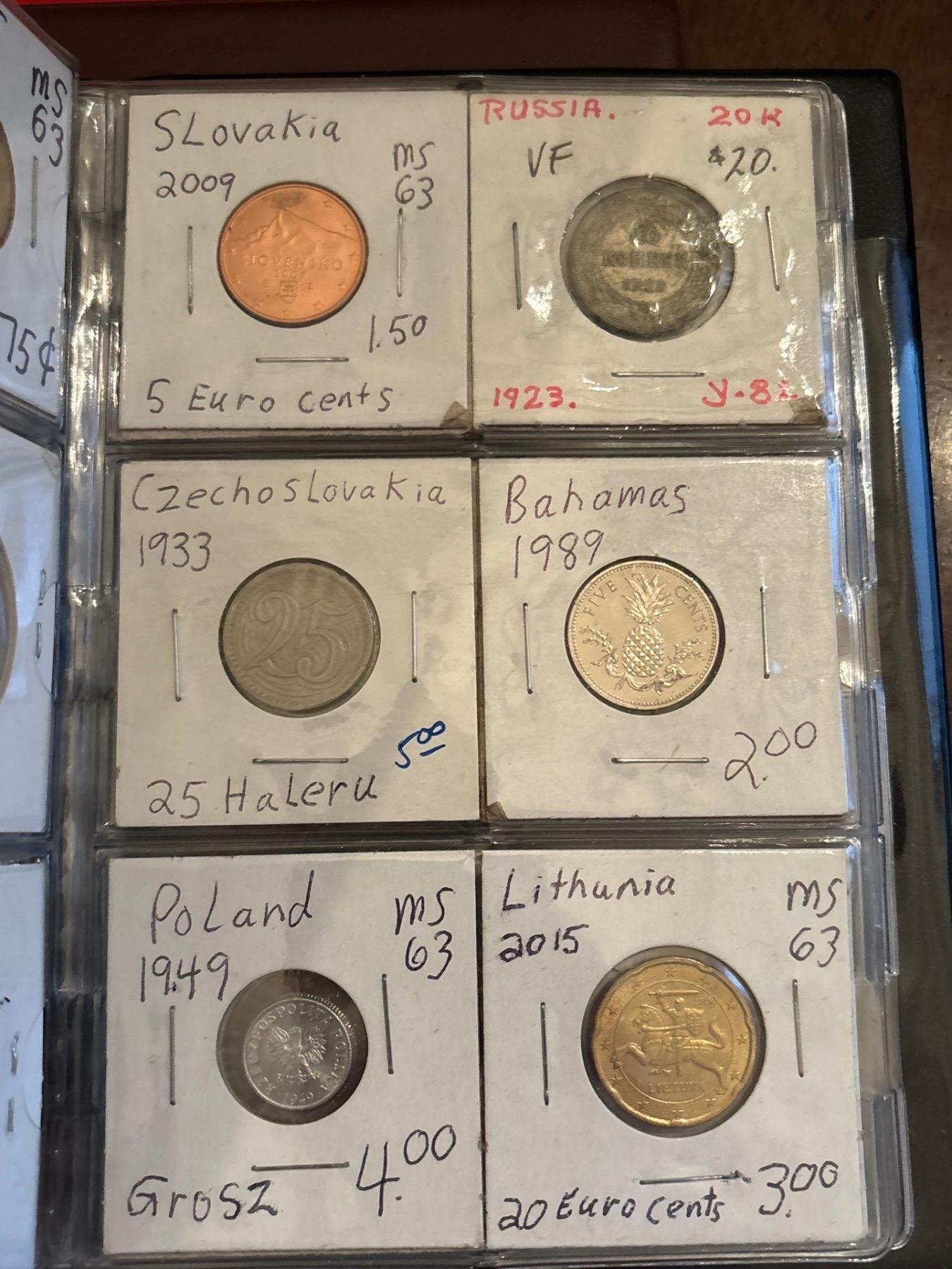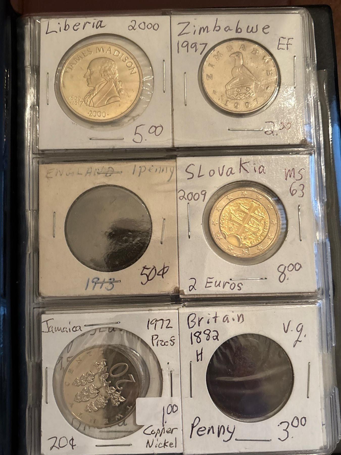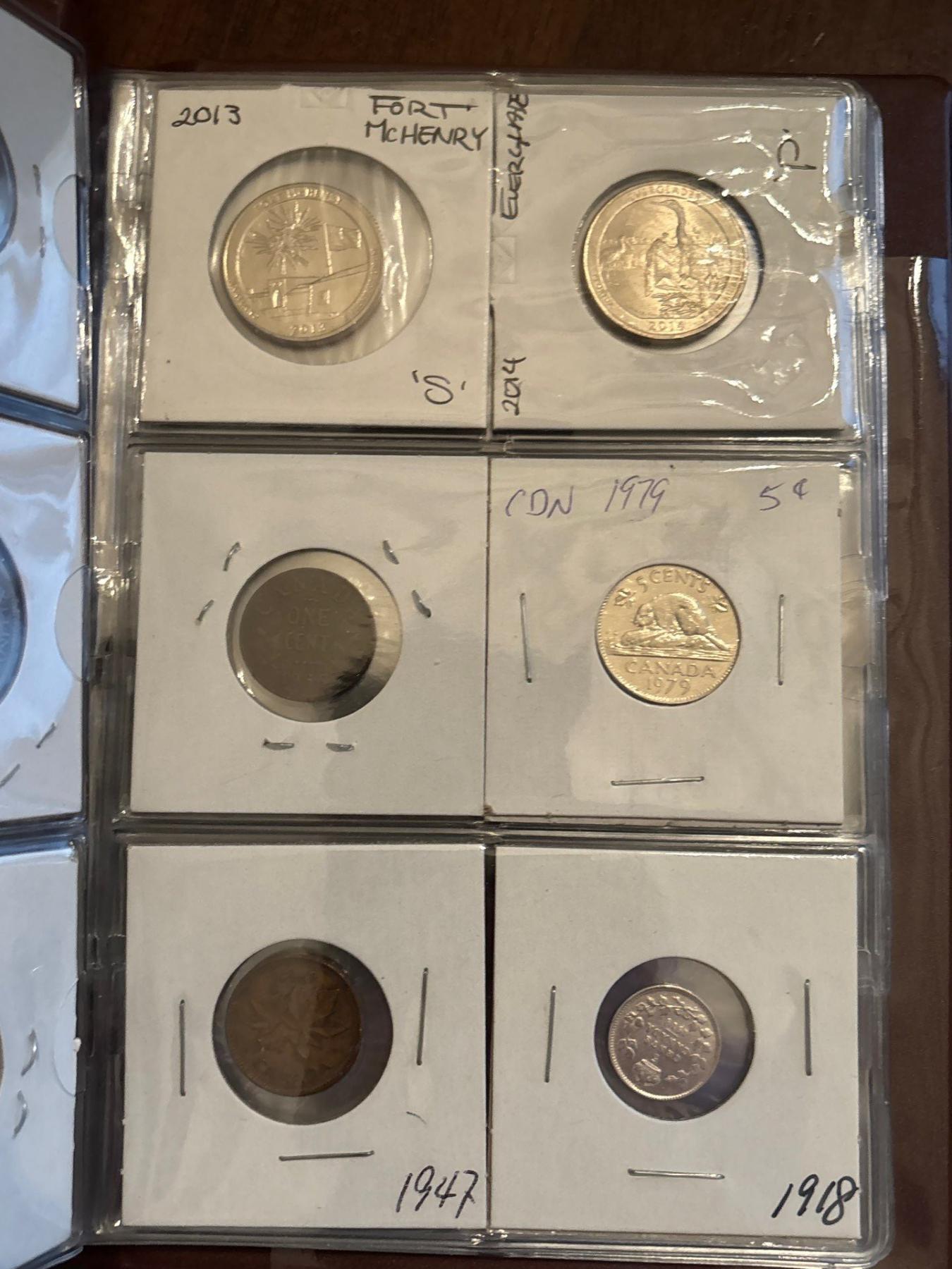 3 Coin Collecting Books with Several Canadian & world Silver Coins .