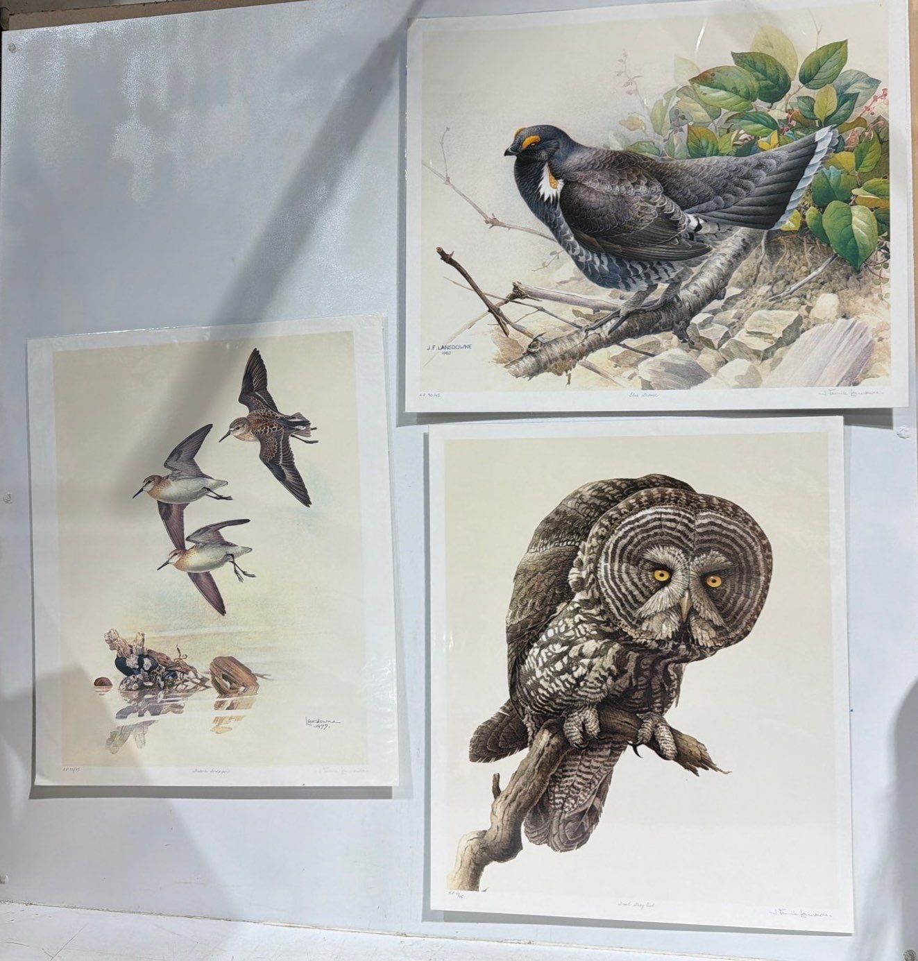 Titled: Great Grey Owl, Blue Grouse, Western Sandpiper