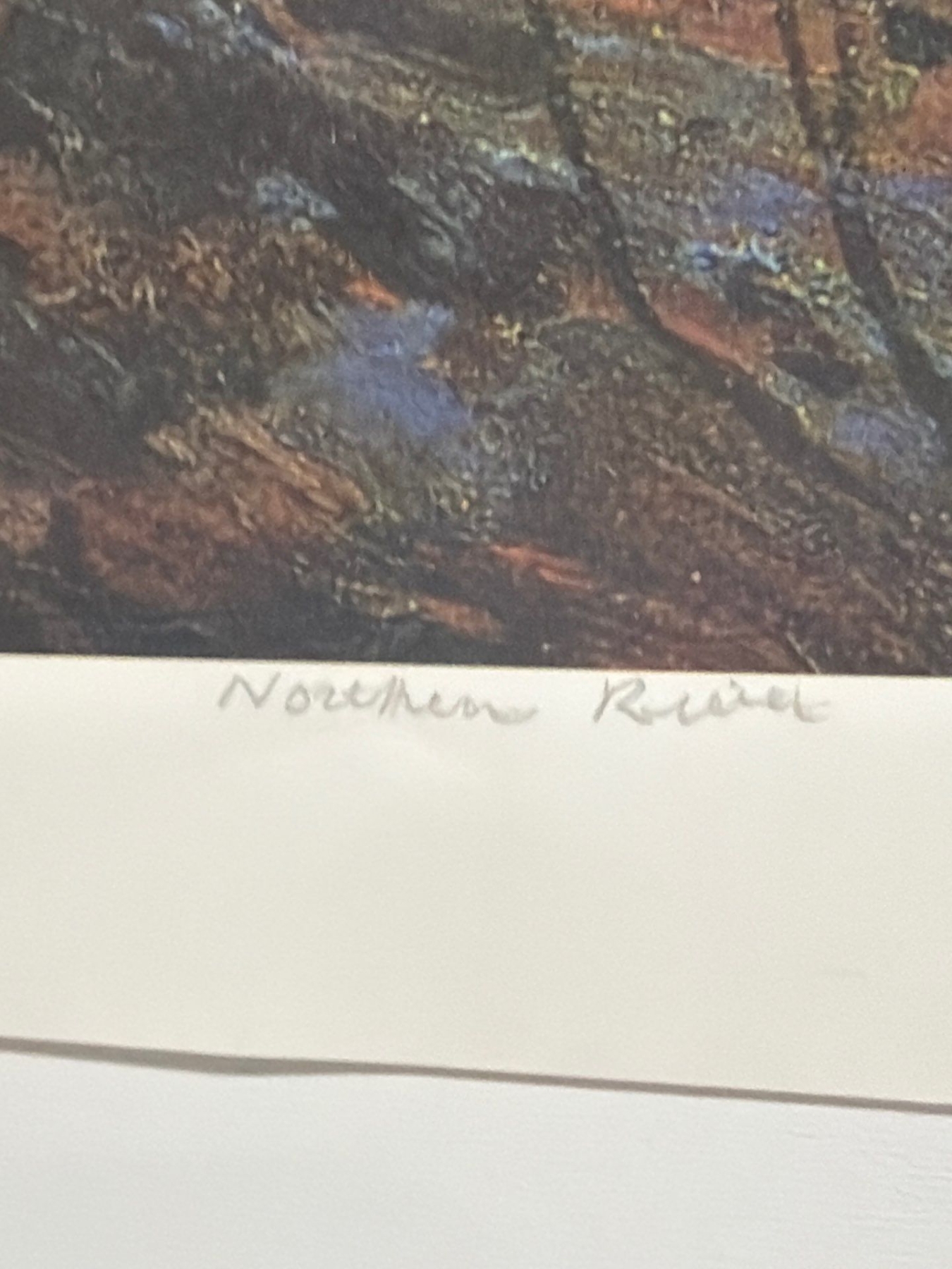 Titled: Late Afternoon-McCannell Lake, Woodland Waterfalls, and Northern River