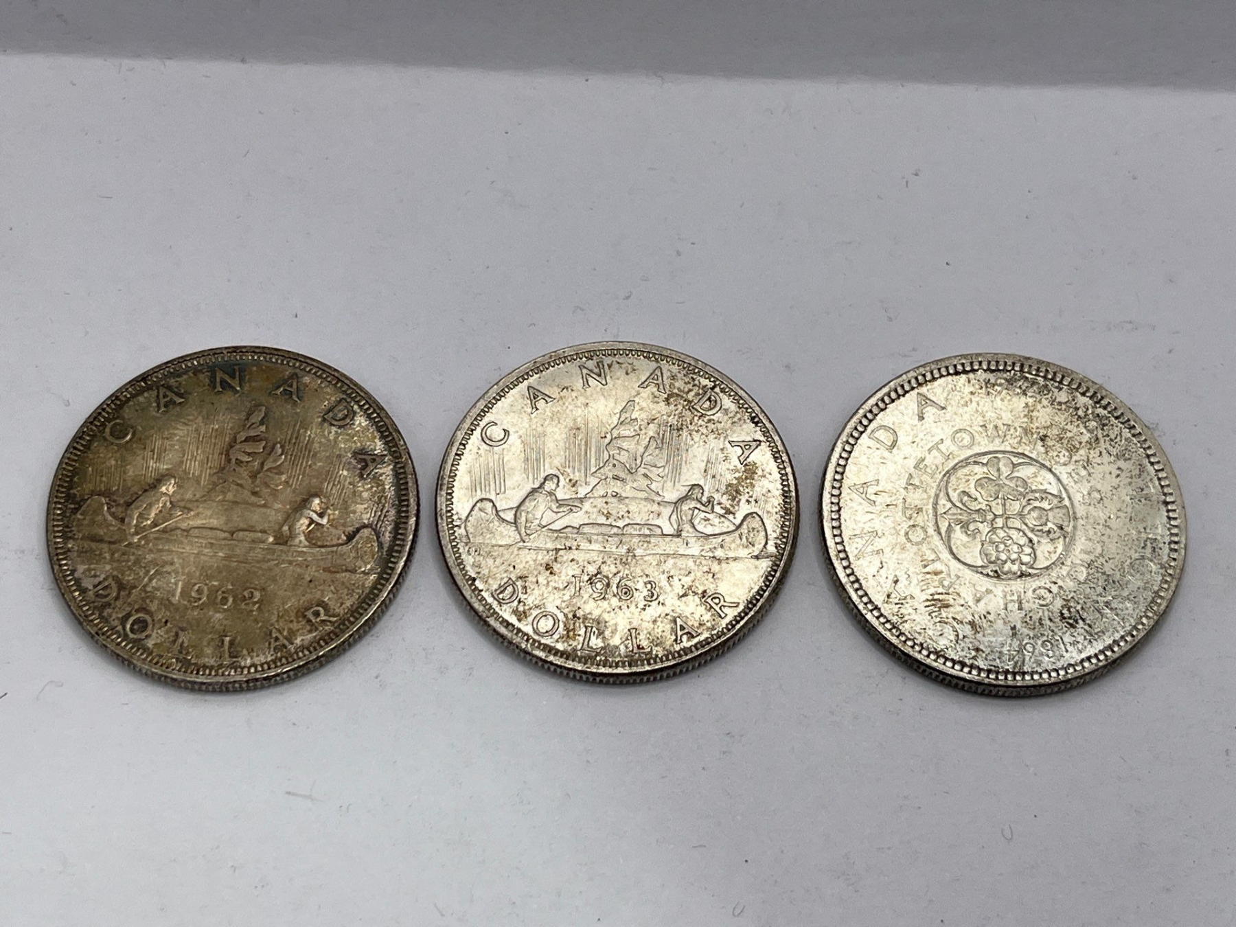 3 Silver Canadian Dollars From 1962-1963-1964 80% Silver 70.1g