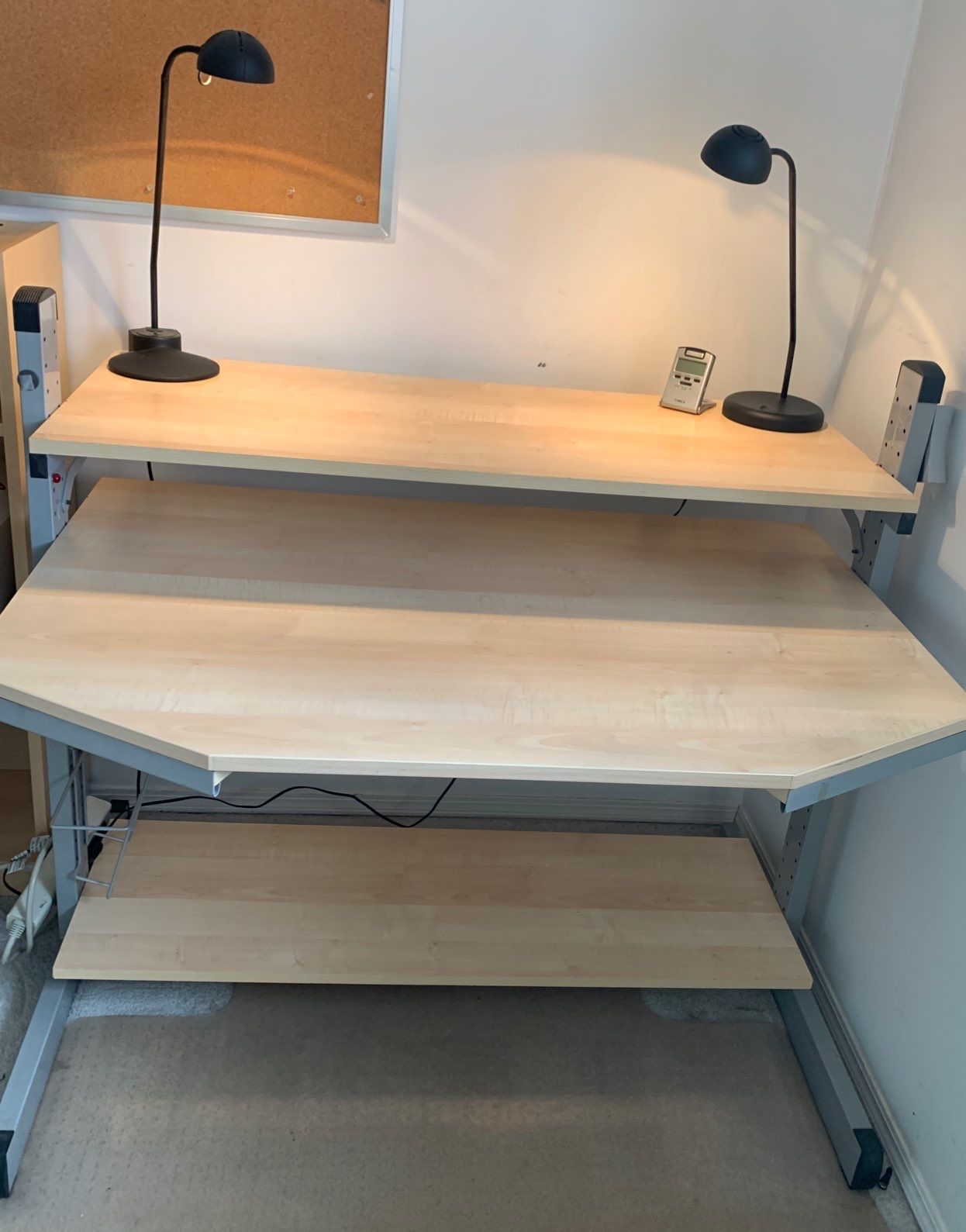 3 Tier Home Office Desk 46x33x41 w/ 2 Desk Lamps & Clock