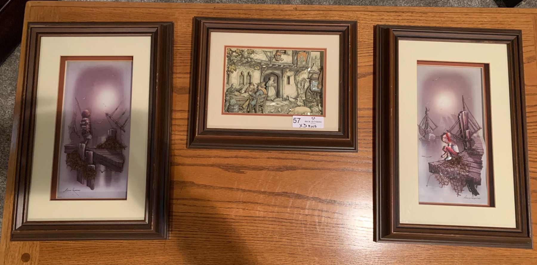 3 x Decoupage Artworks - By Andres Orpinas And Anton Pieck, Wooden Framed