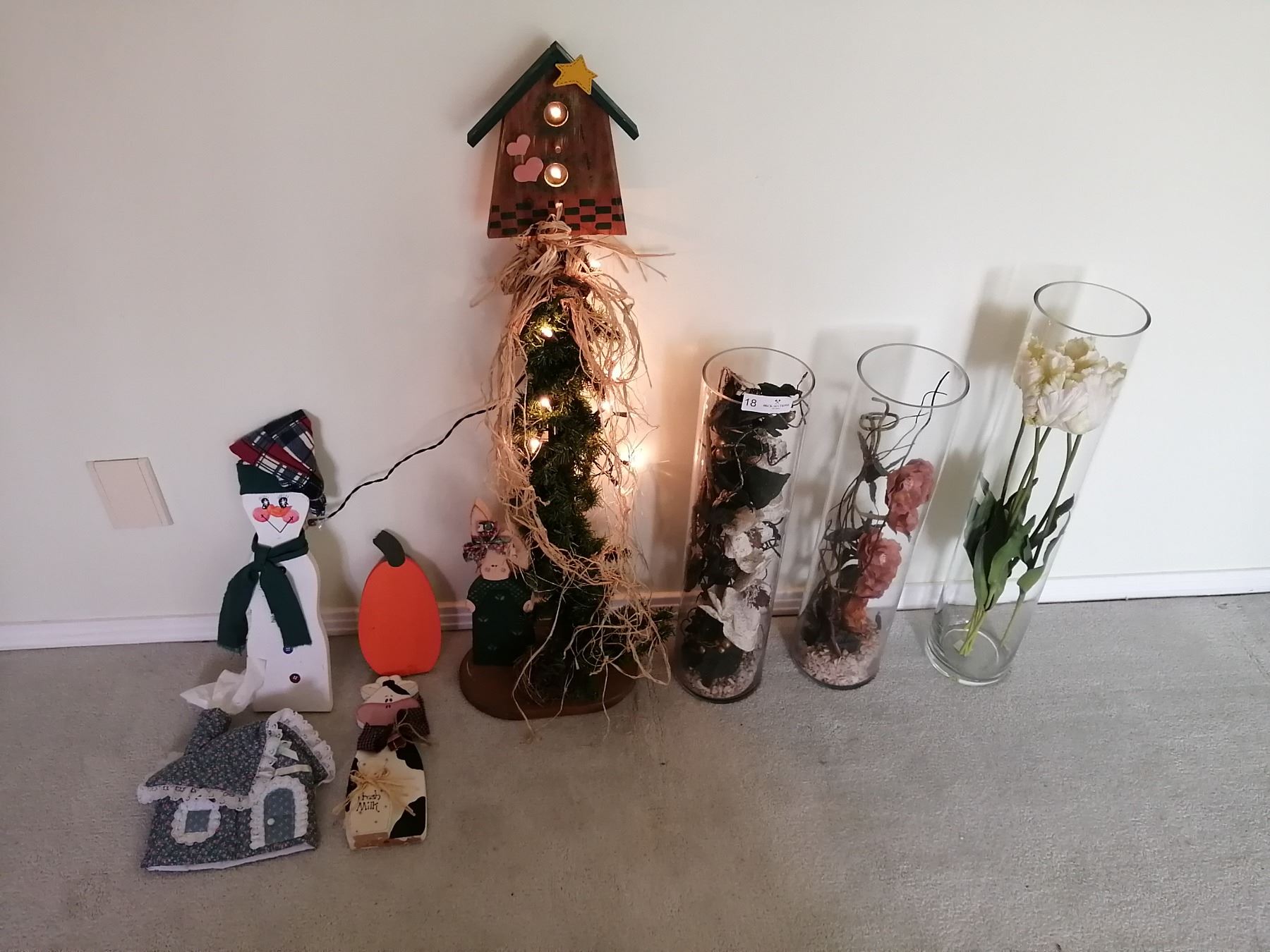 3 x Glass-Encased Artificial Flowers and Assorted Home Decor