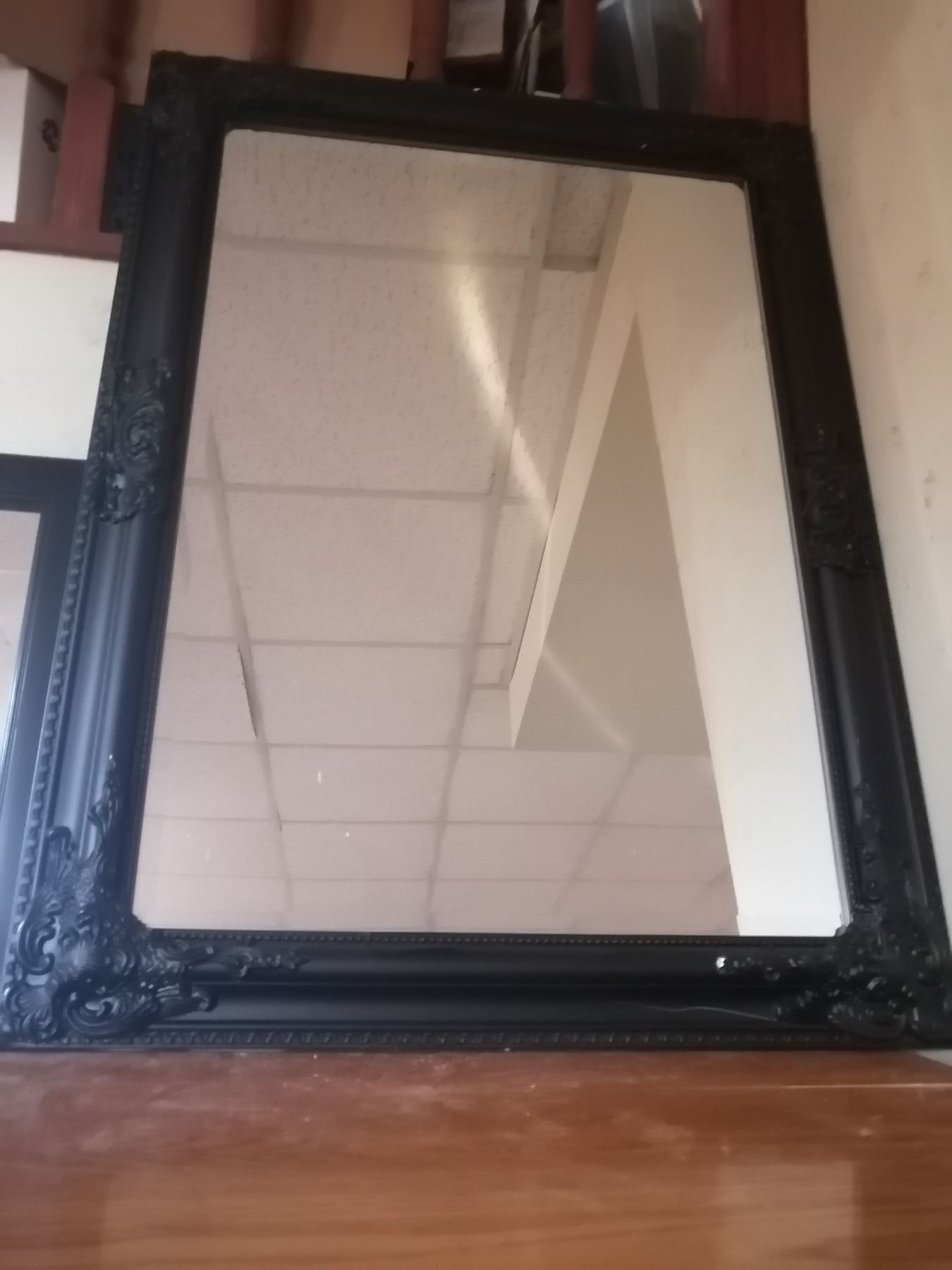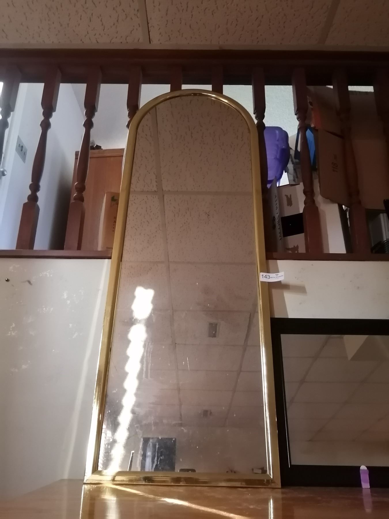 Tall mirror w/ brass colored trim: 48"H x 17"W