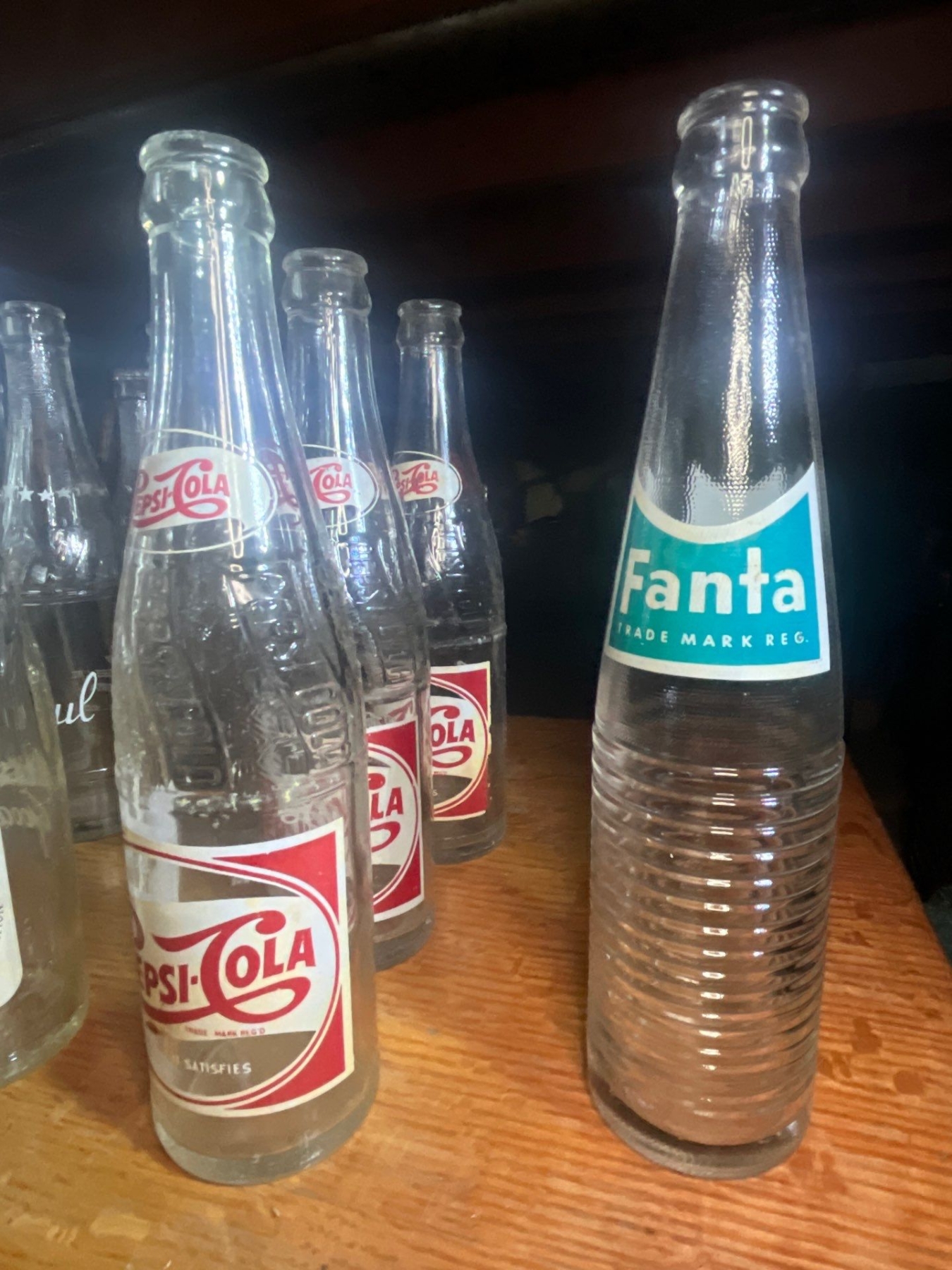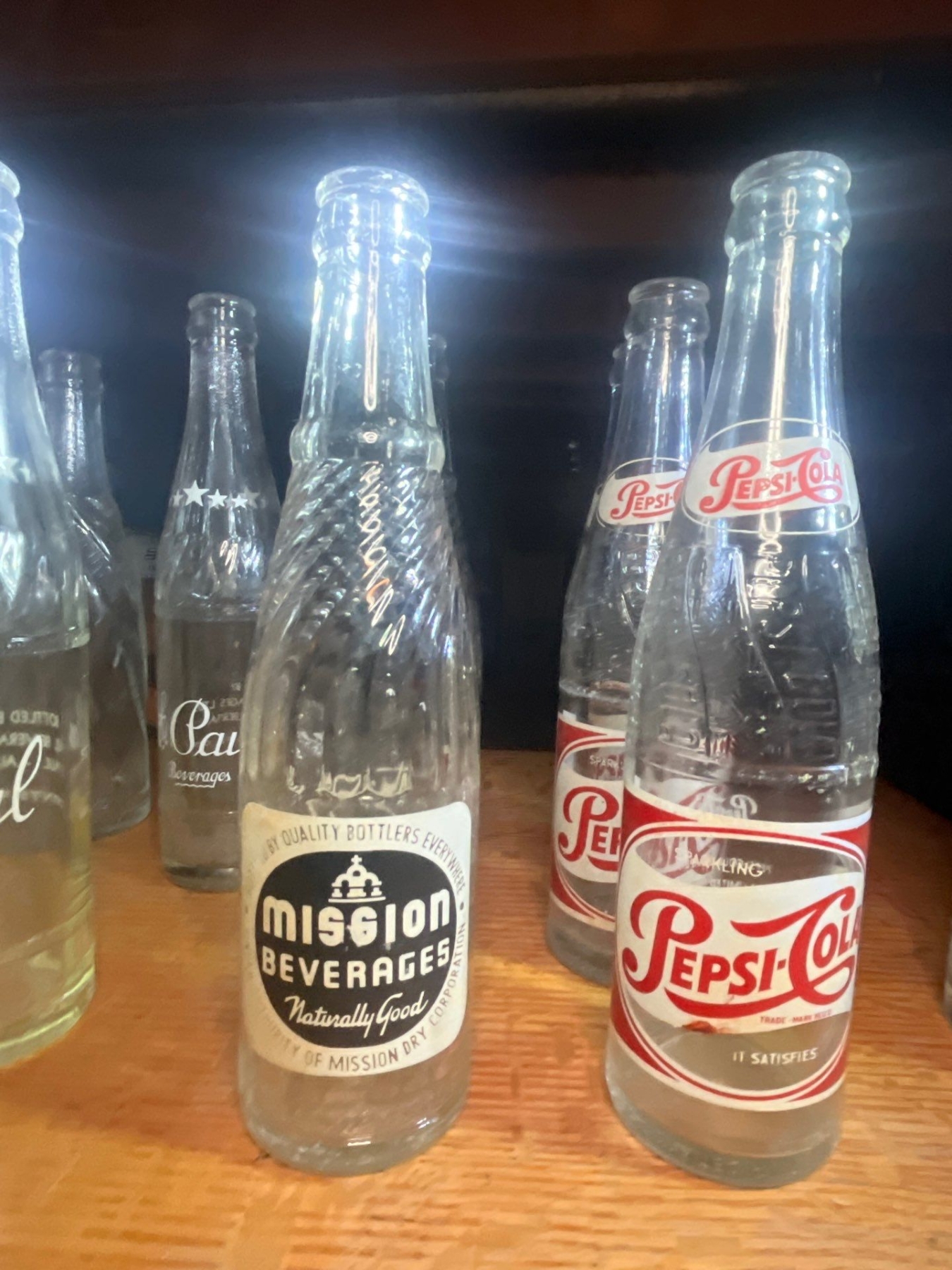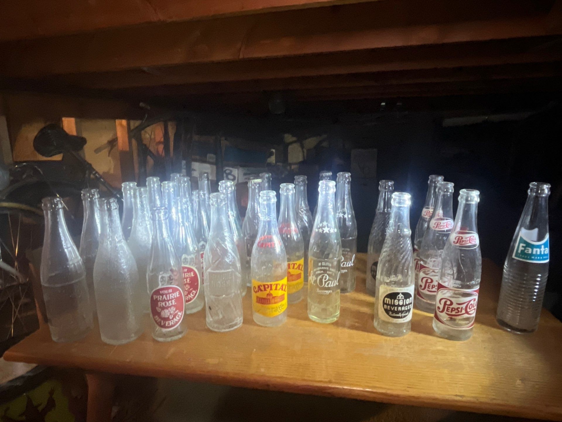 30 bottles in total, assortment of Pepsi-Cola, mission, beverages, Saint Paul beverages capital beverages Prairie, Rose, and a Fanta.
