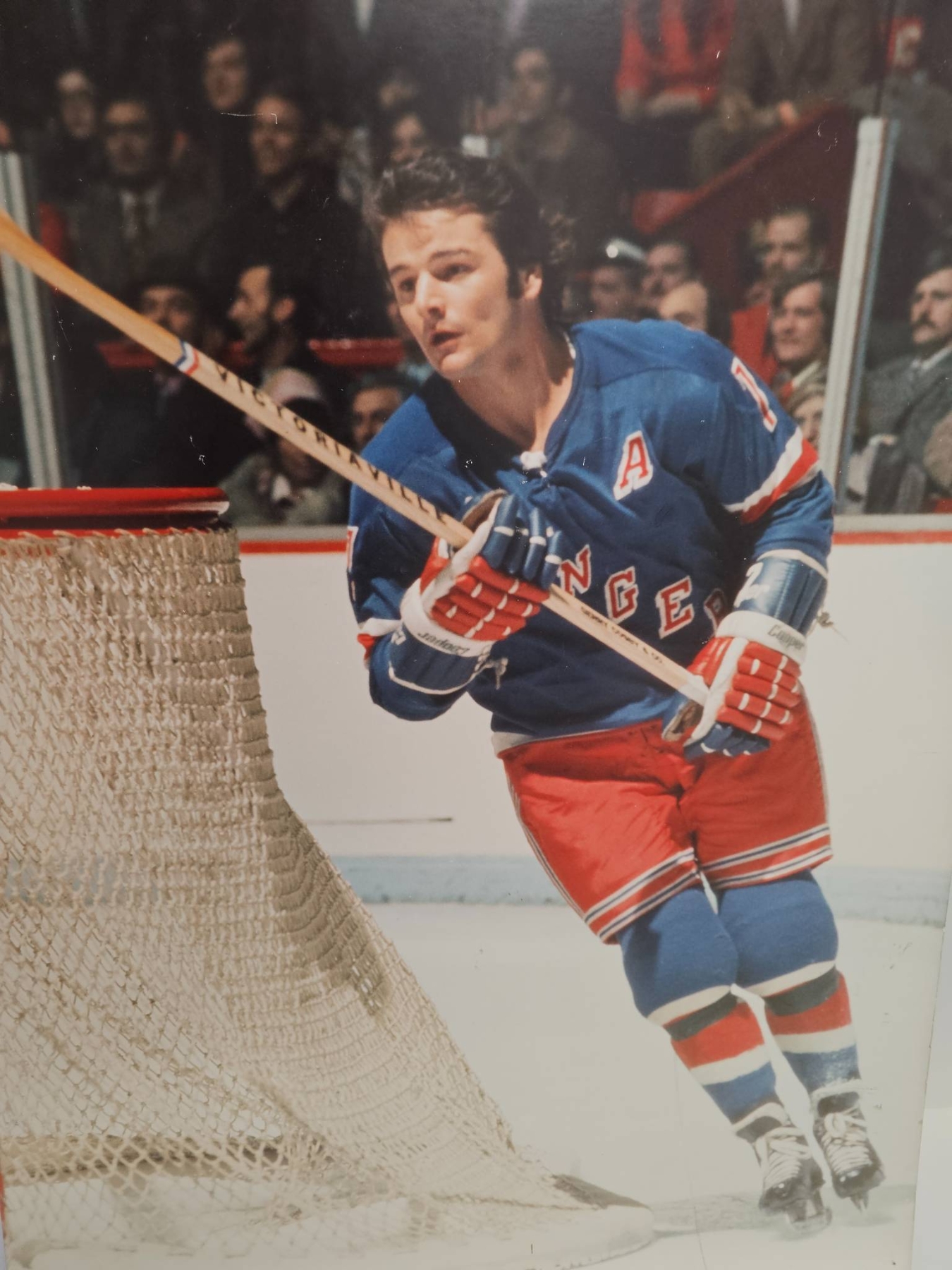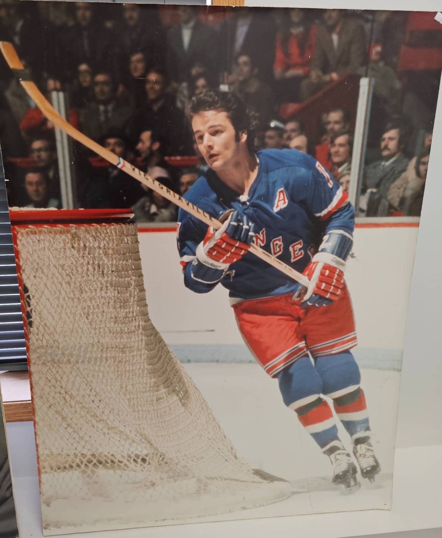 Large 30x40 poster featuring an iconic hockey action scene. The vibrant image captures a player in a red, white, and blue uniform maneuvering near a goal net. Ideal for sports enthusiasts or hockey memorabilia collectors, this piece presents a dynamic snapshot of the game. Ready to display, the size commands attention and adds character to any room.