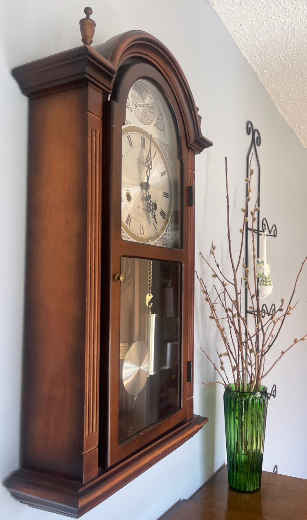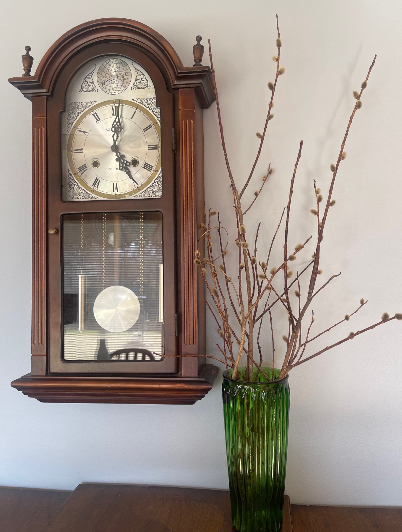 31 Day Citizen Tempist Fugit Wall Clock w/ Pendulum & Pussy Willows