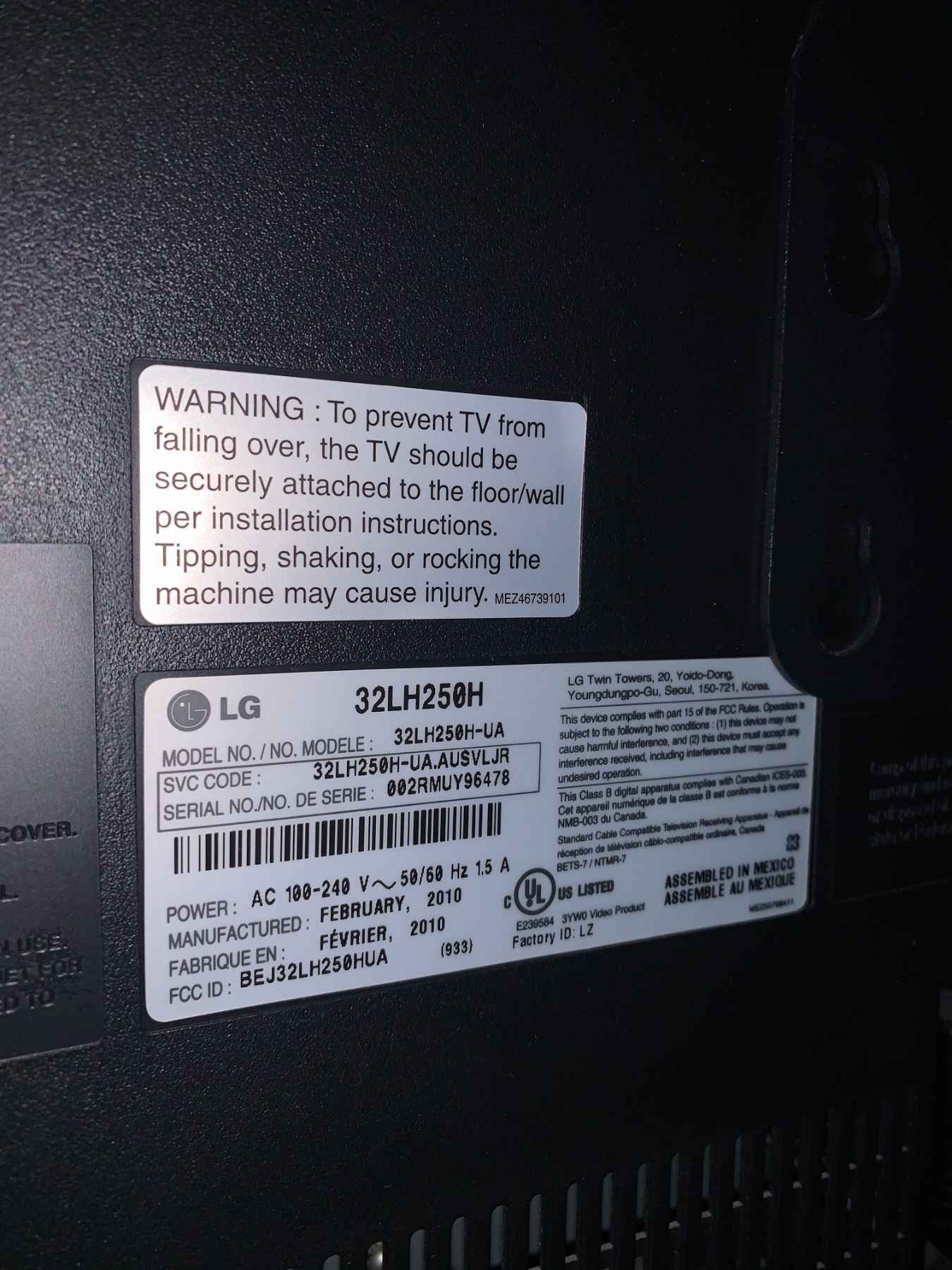 32" LG TV (Model No. 32LH250H-UA) w/ Wall Mount