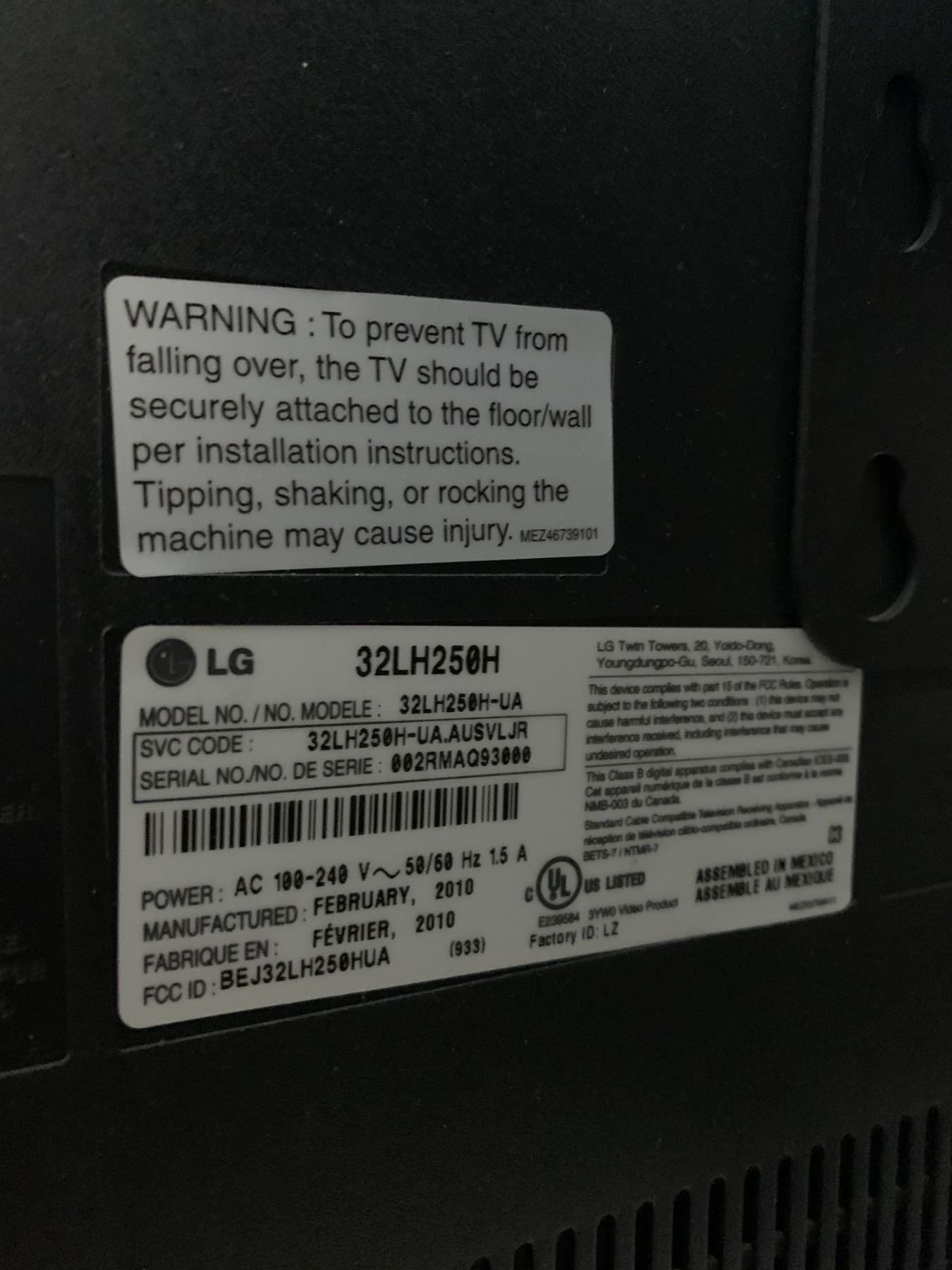 32" LG TV (Model No. 32LH250H-UA) w/ Wall Mount