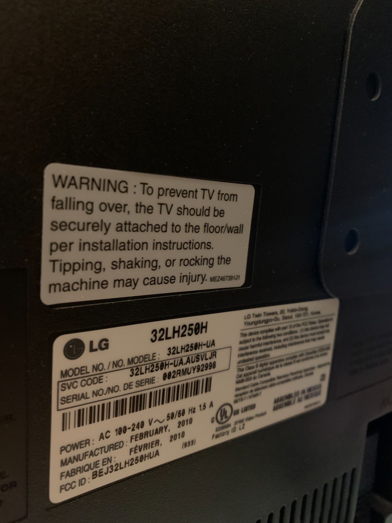 32" LG TV (Model No. 32LH250H-UA) w/ Wall Mount