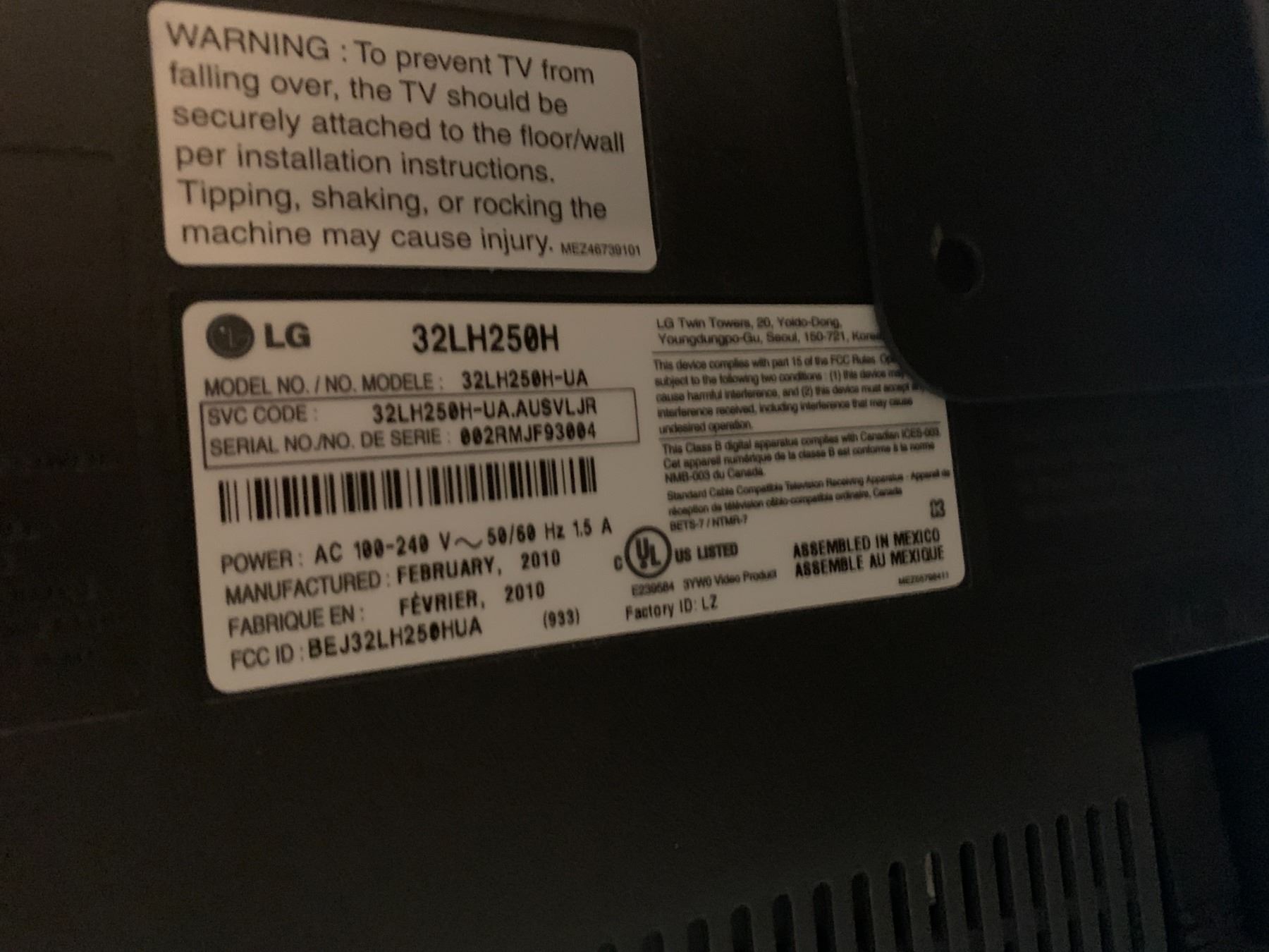 32" LG TV (Model No. 32LH250H-UA) w/ Wall Mount