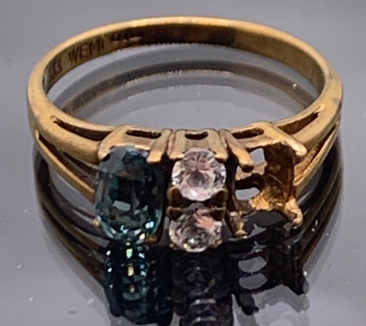 333 (8k) Gold Ring w/ Clear & Colored Stones (1 Stone is Missing), Weighs 2.1g
