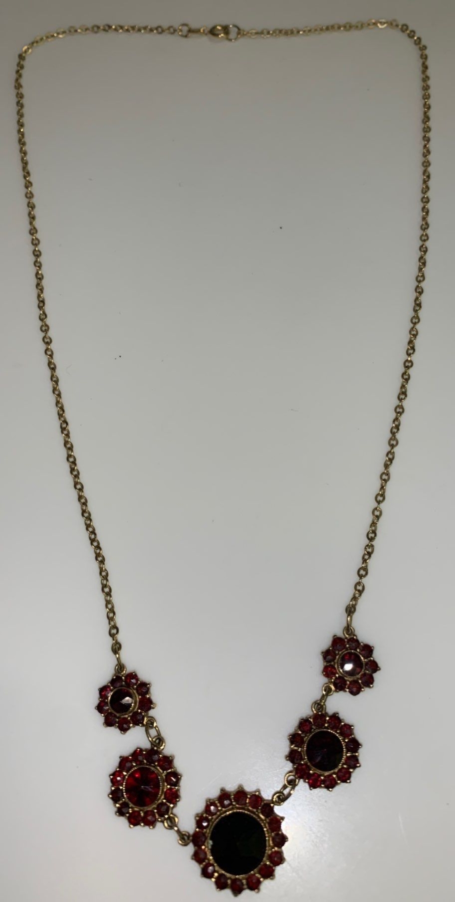 333 Stamped Gold Necklace w/ Red Colored Stones - Weighs 6.9g