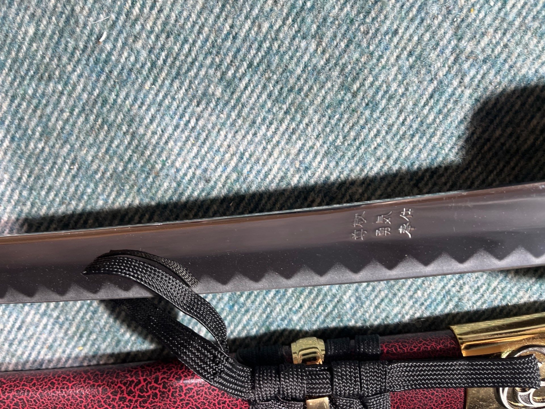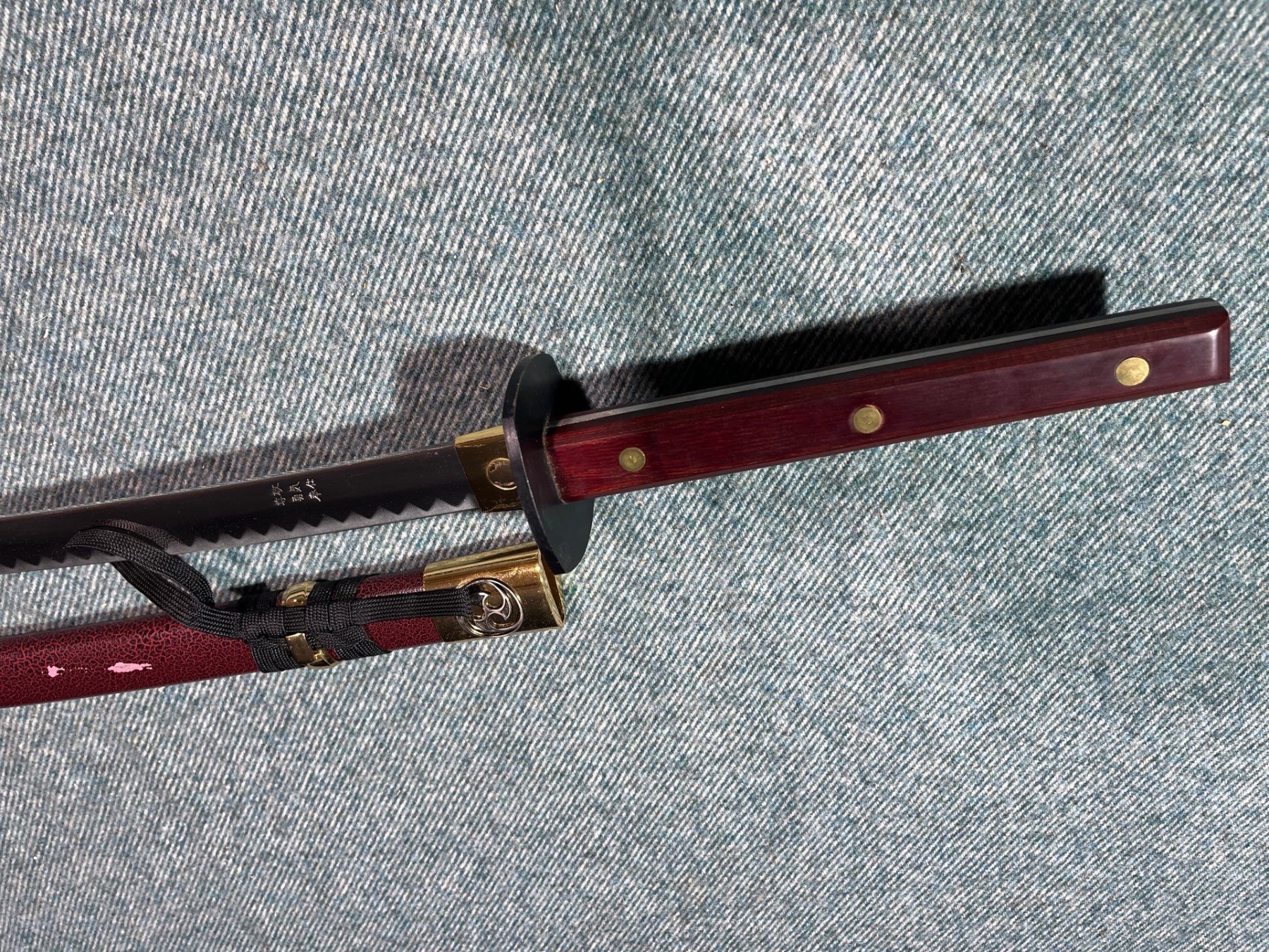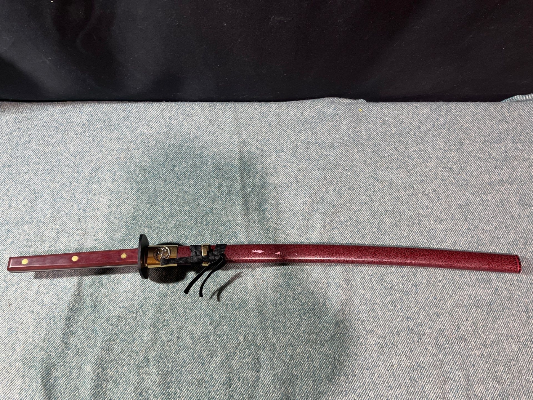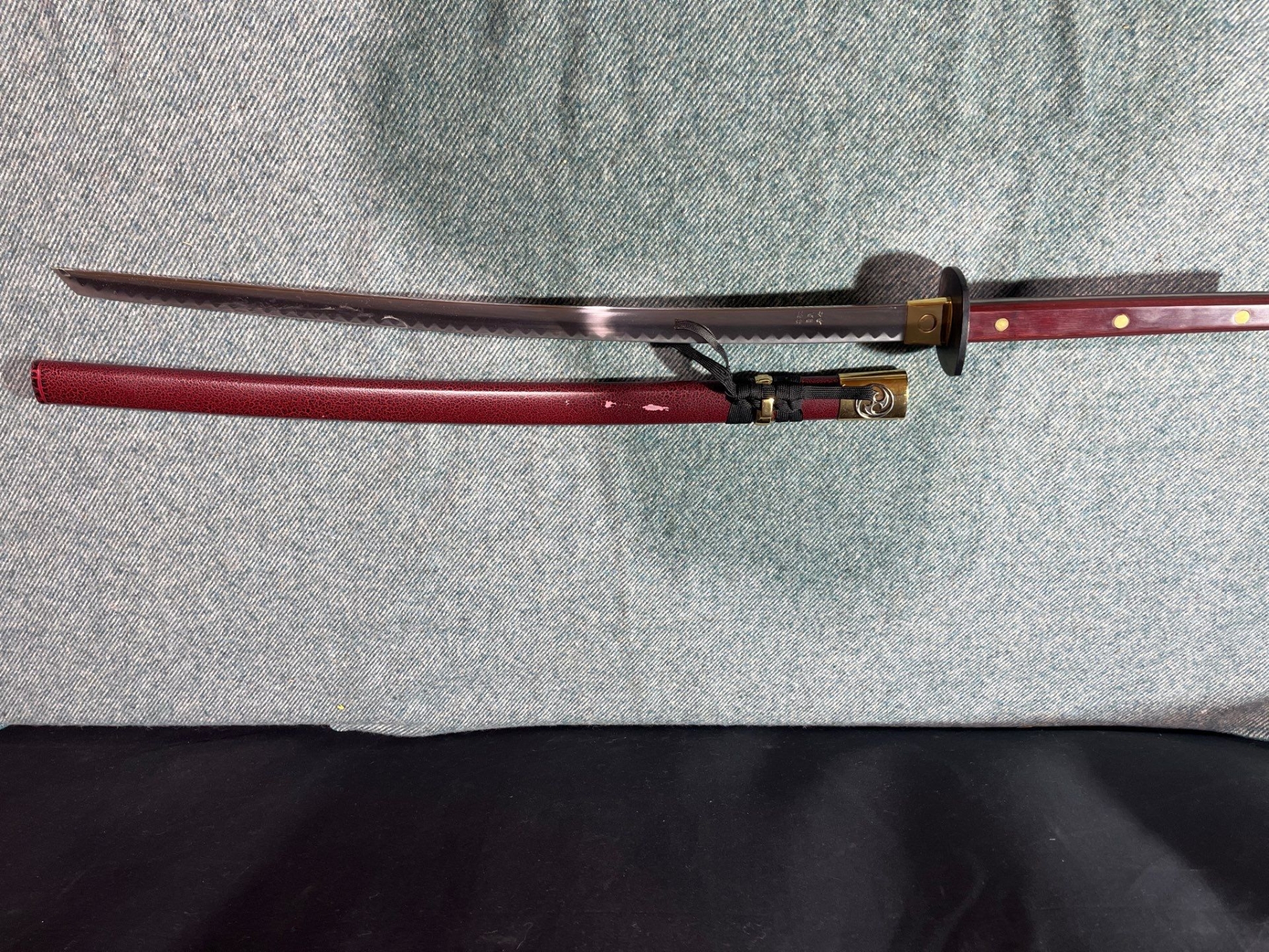 37" Red Crackle Detail Katana Sword w/ Rope Grip Handle