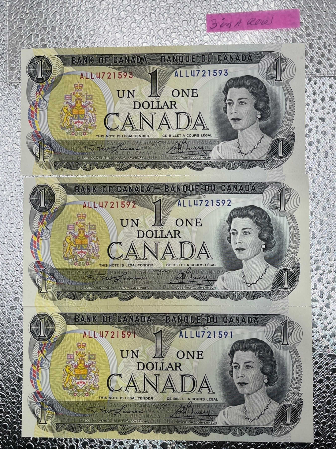 3x 1973 Canadian $1 Dollar Bill 4721591/4721592/4721593