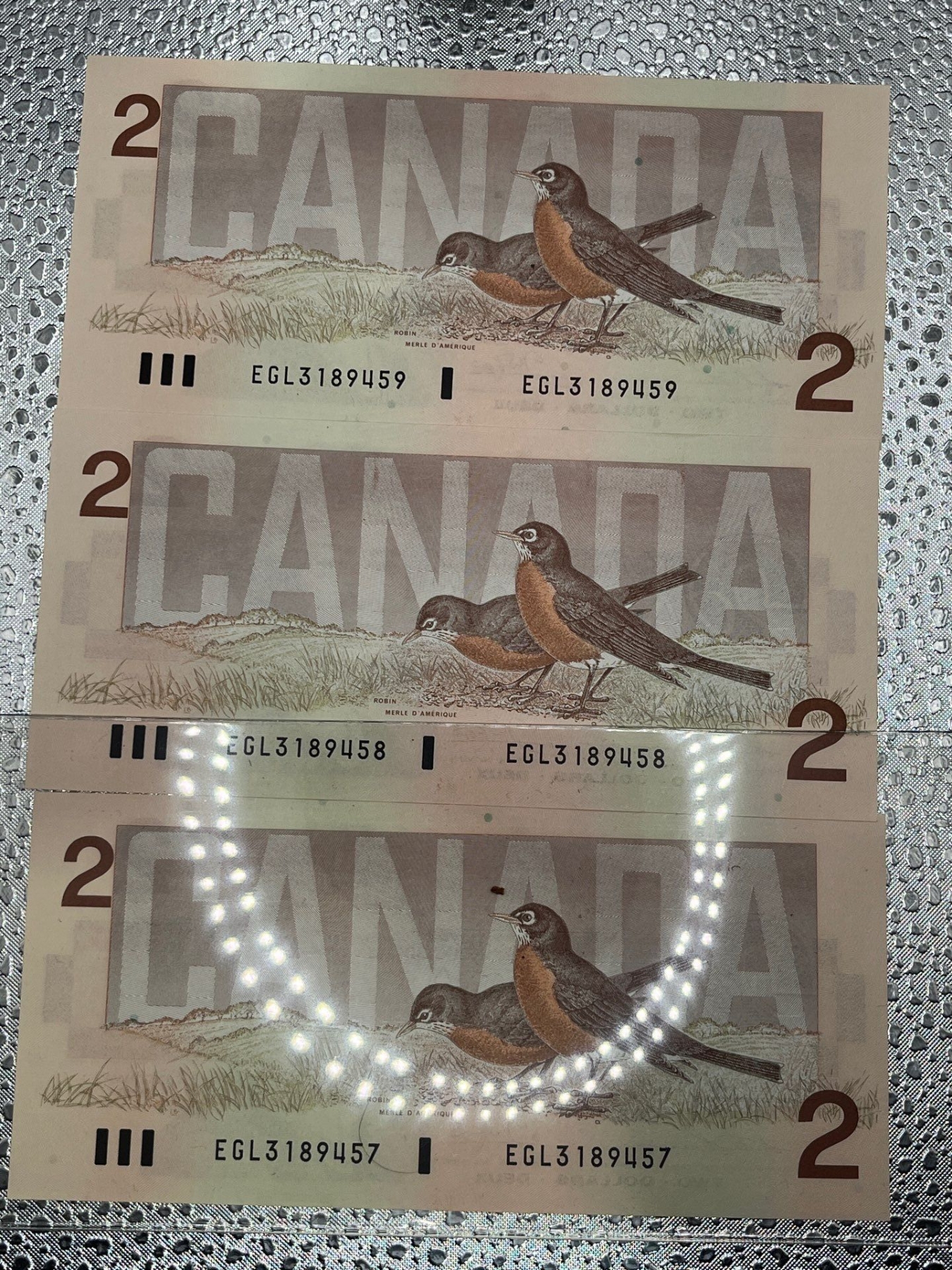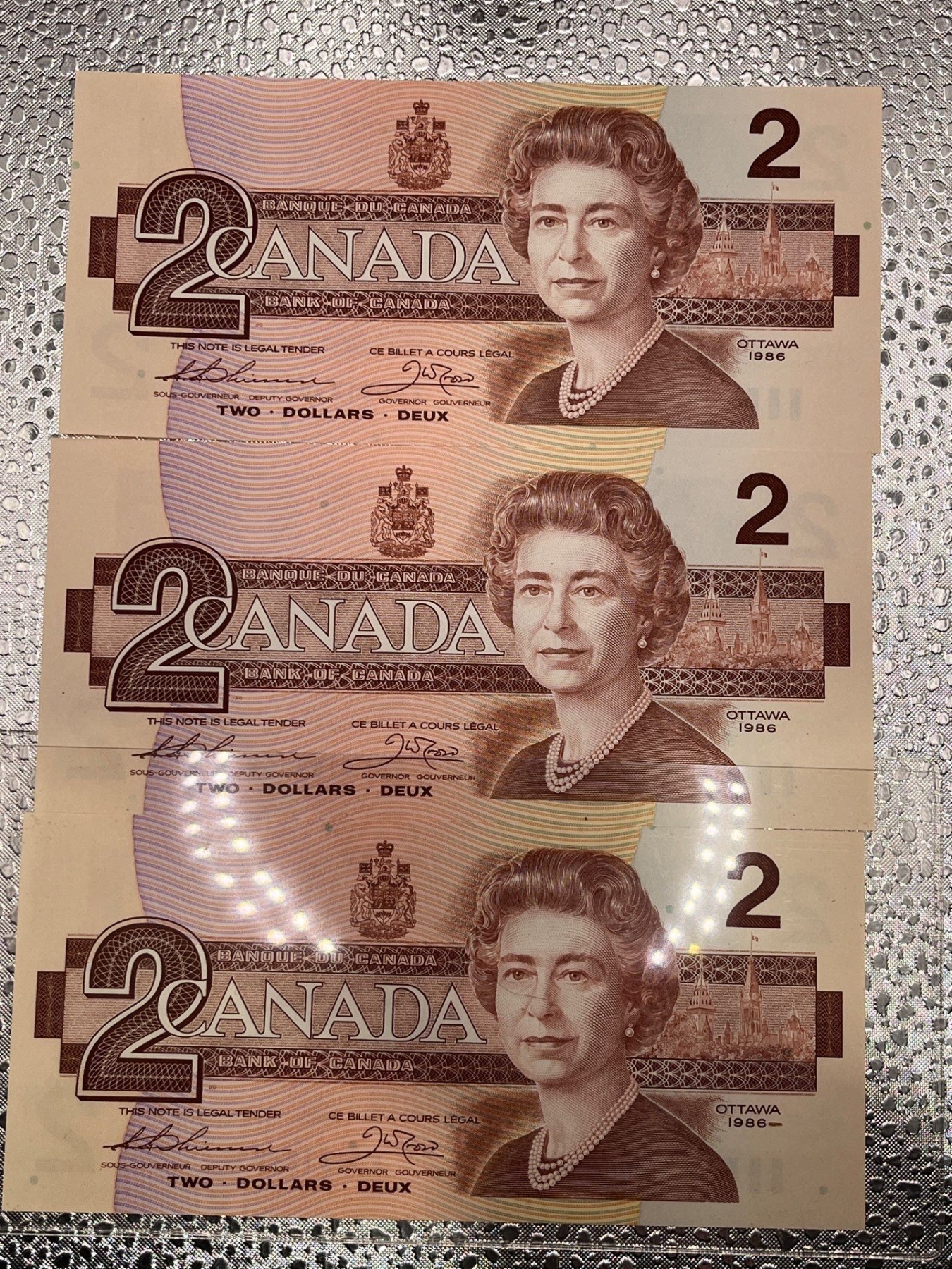 3x 1986 Canadian $2 Dollar Bill 3189457/3189458/3189459