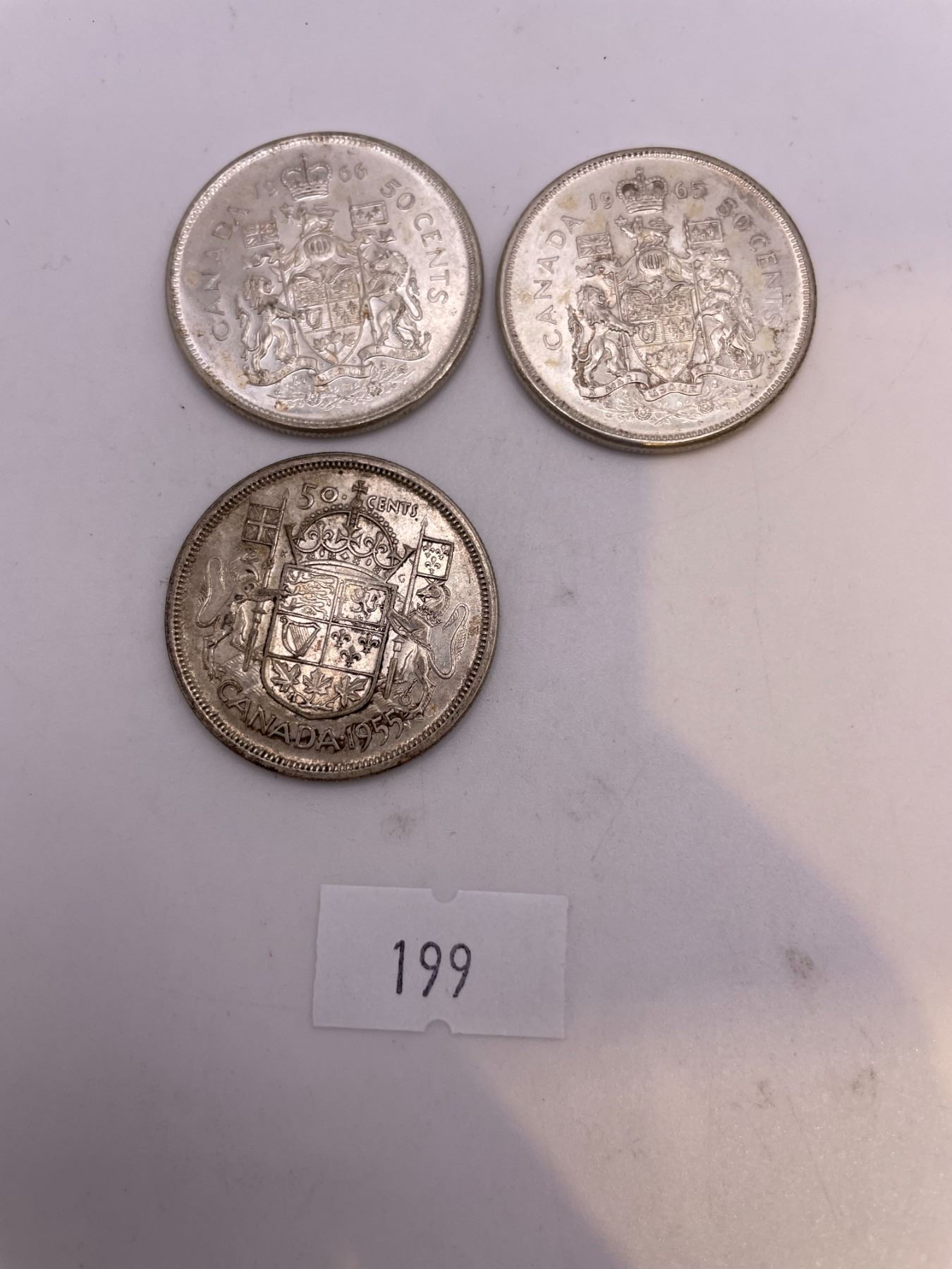 3x Canadian 50 Cent PIeces, 1955-1966 (11.66g 80% Silver/each)