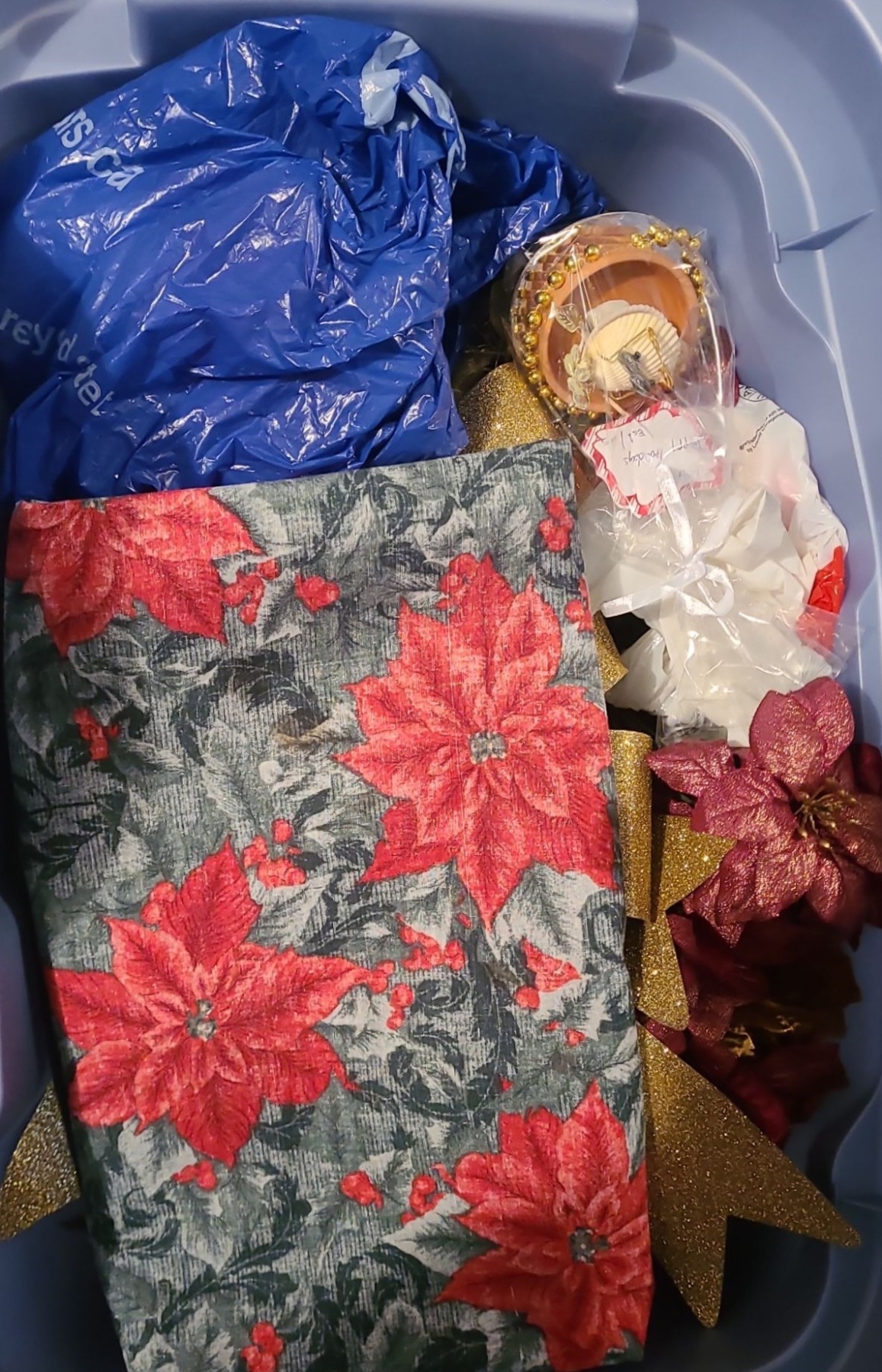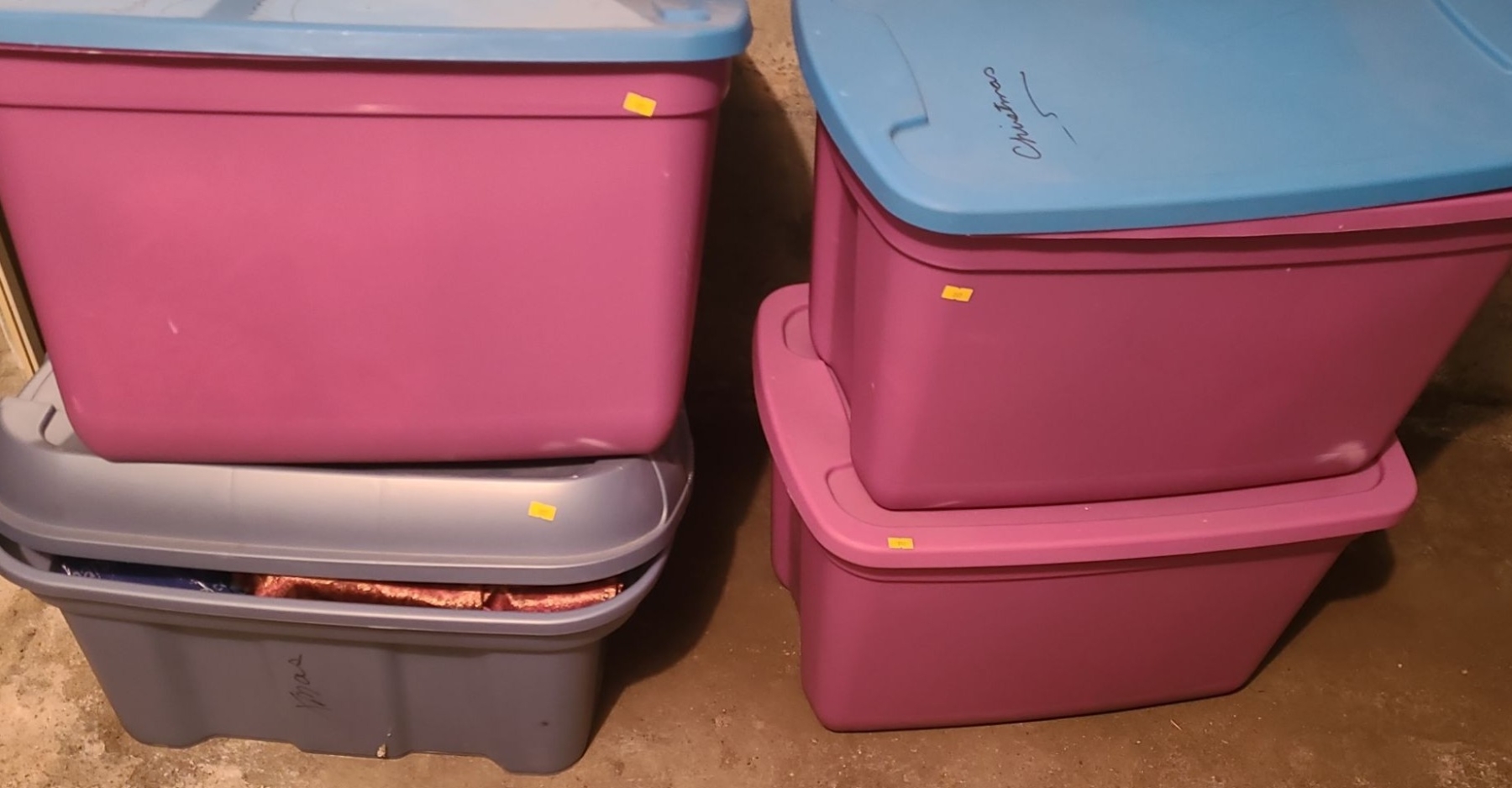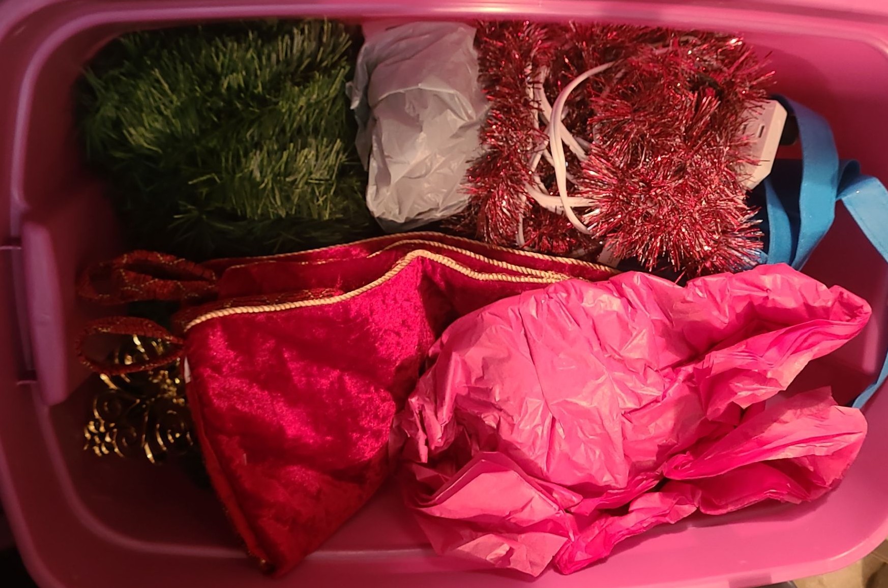 4 Big Bins of Holiday Decorations Including: Garland, Stockings, Lights and More!