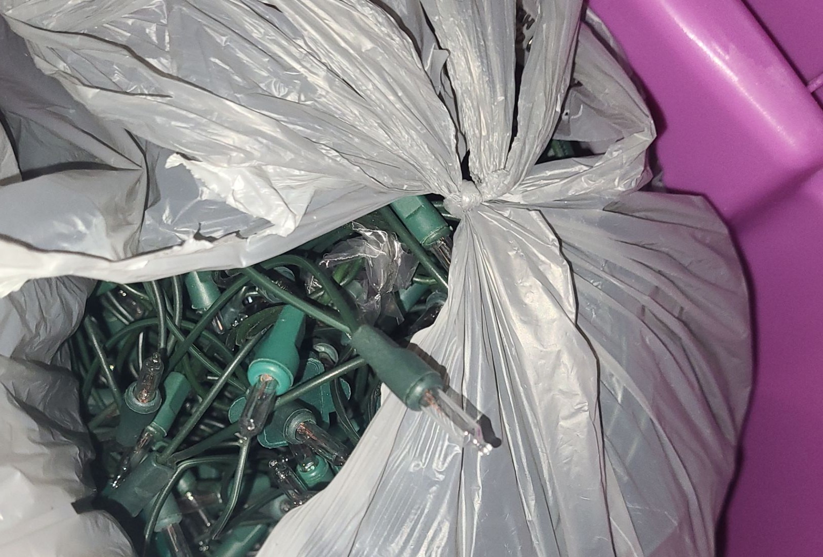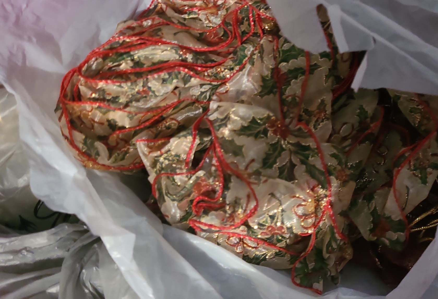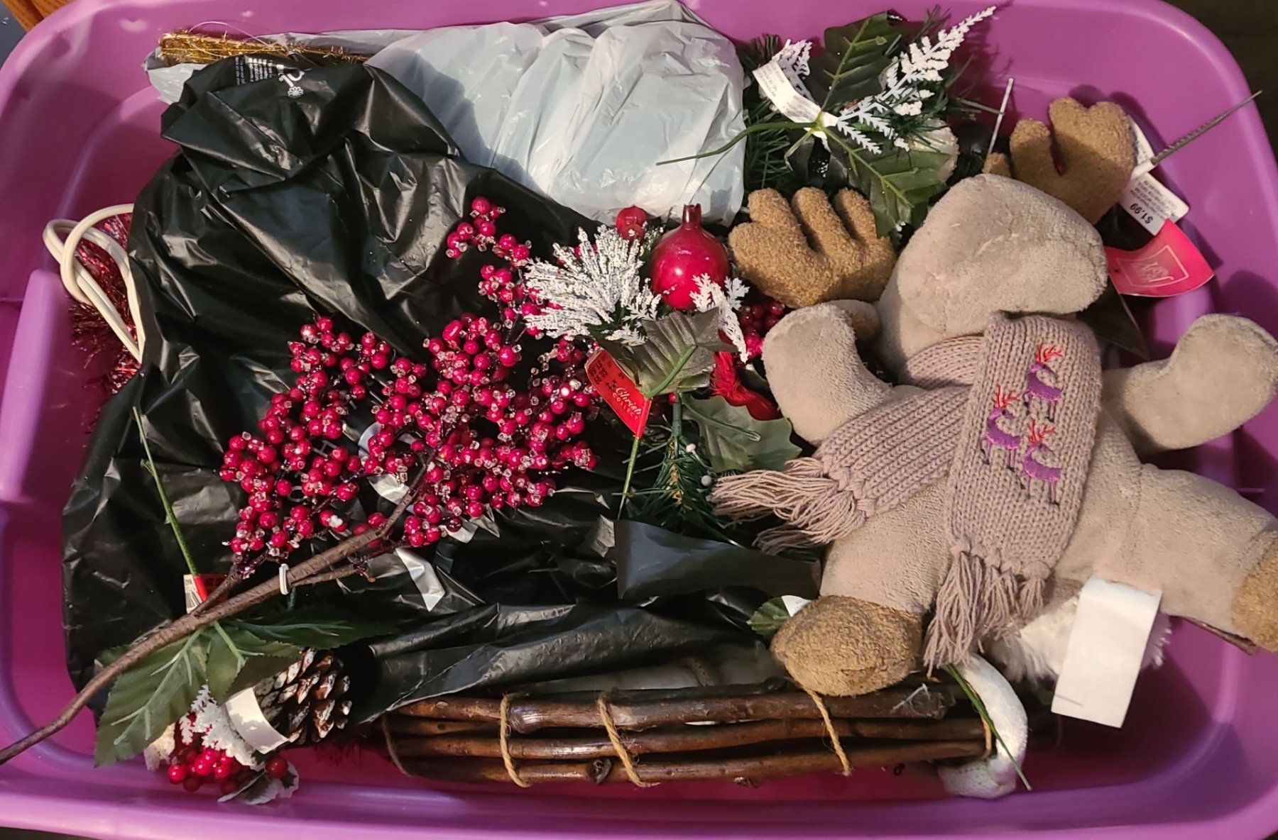 4 Big Bins of Holiday Decorations Including: Garland, Stockings, Lights and More!