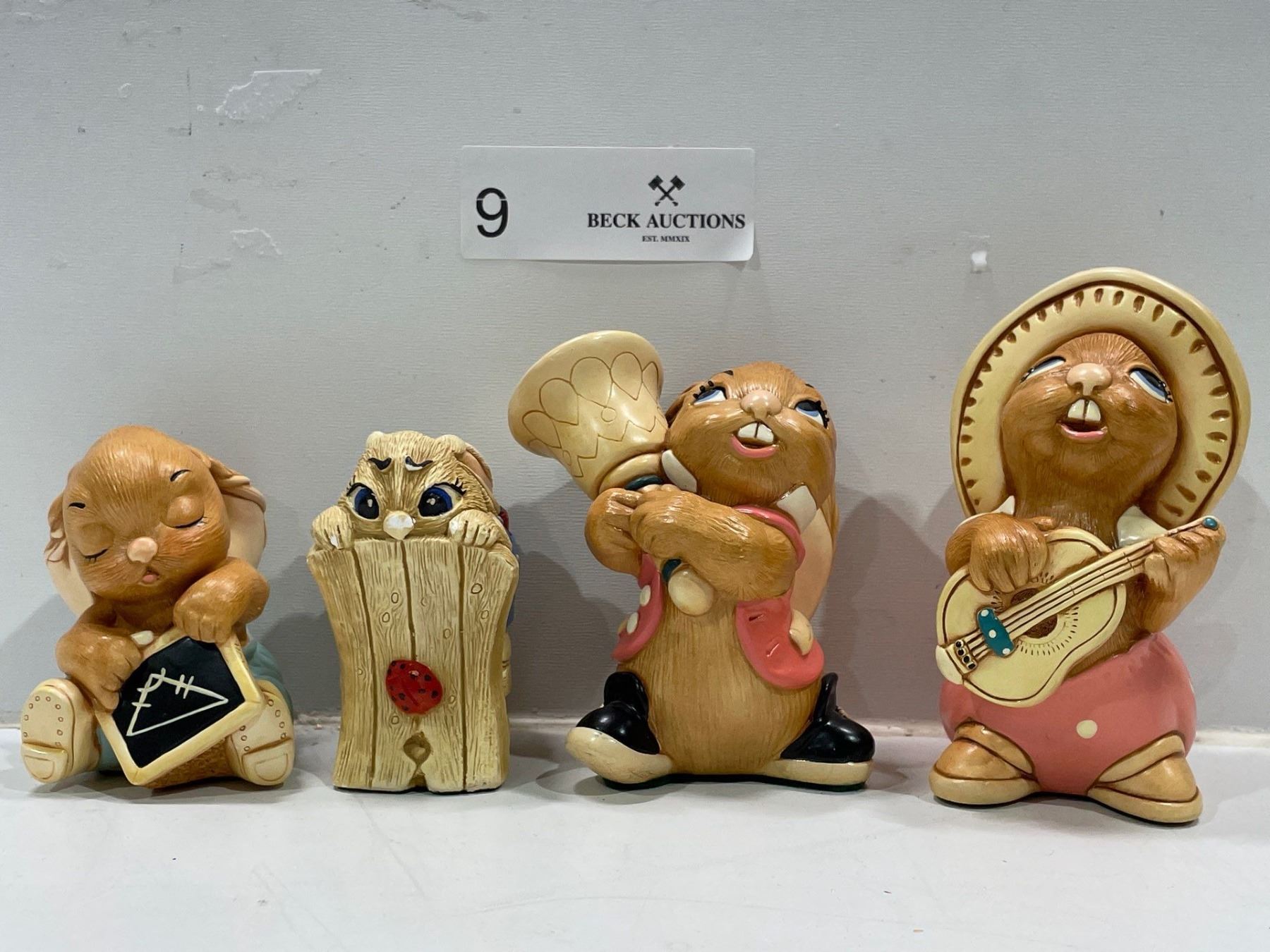 4 Collectible Pendelfin Bunny Figurines,  Euclid, Clanger, Rocky