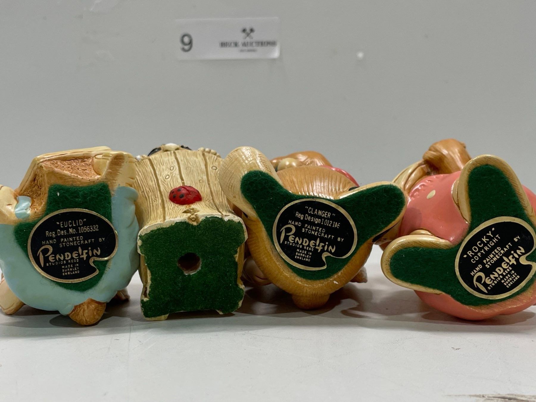 4 Collectible Pendelfin Bunny Figurines, "Euclid, Clanger, Rocky"