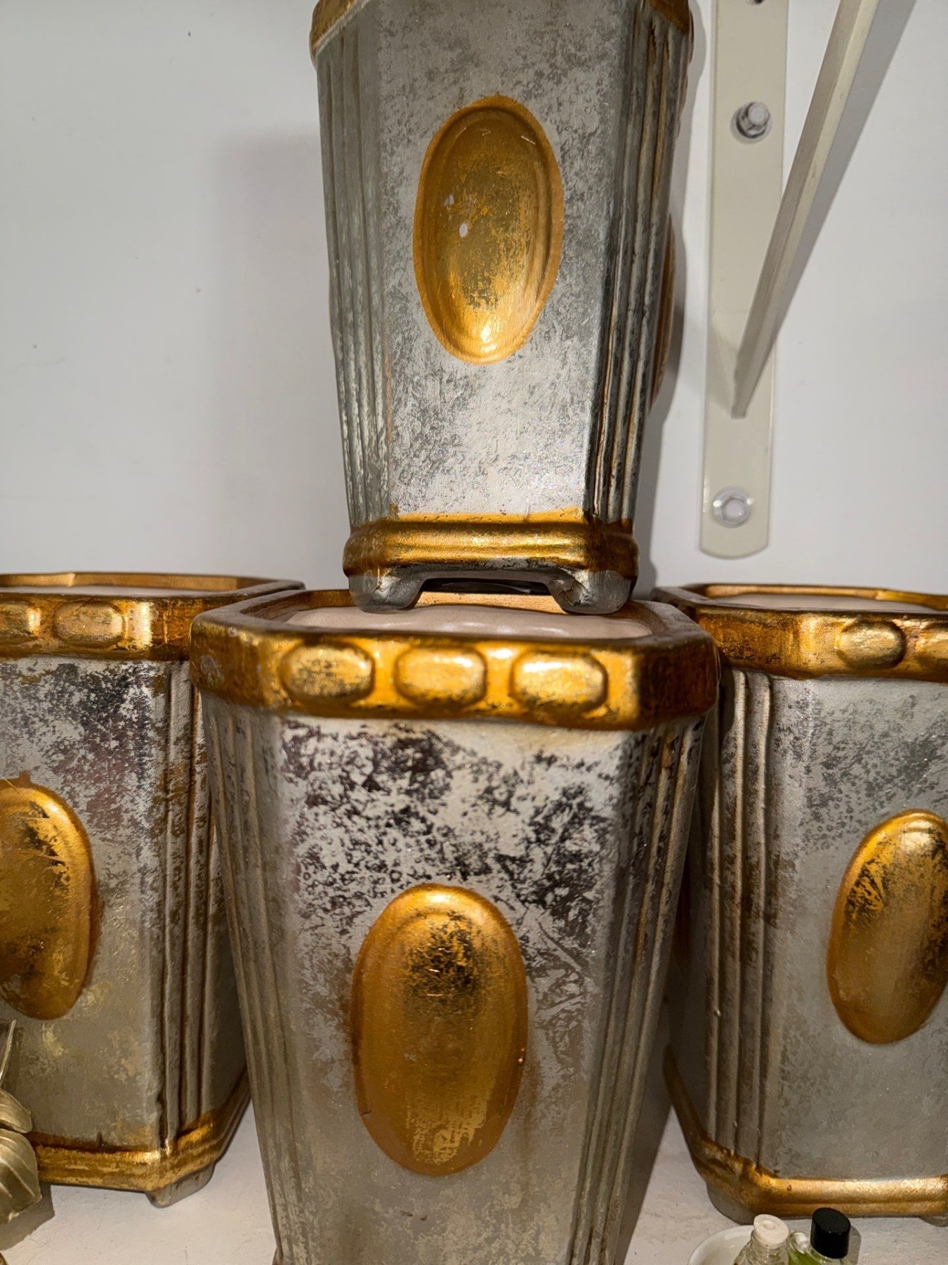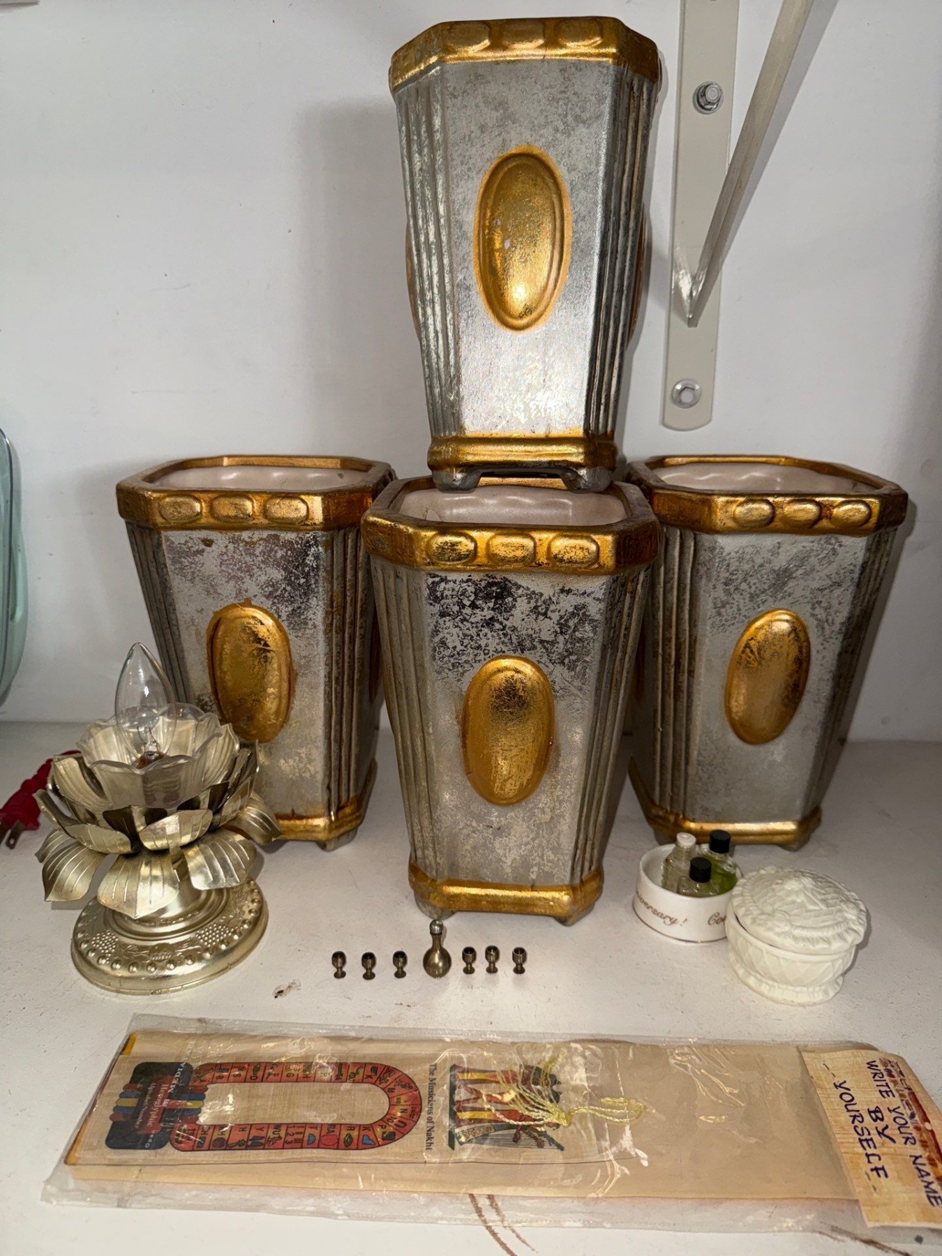 4 Rectangular Fluted Vessels 10T / Vases w/ Brass Light & More