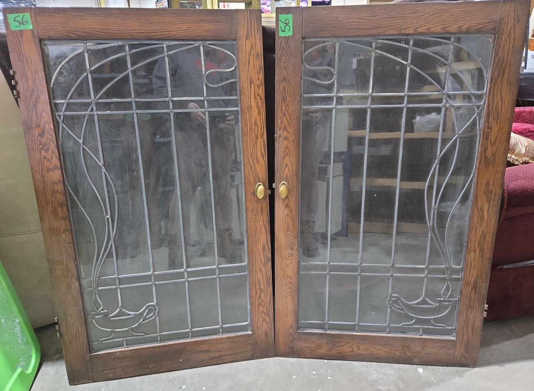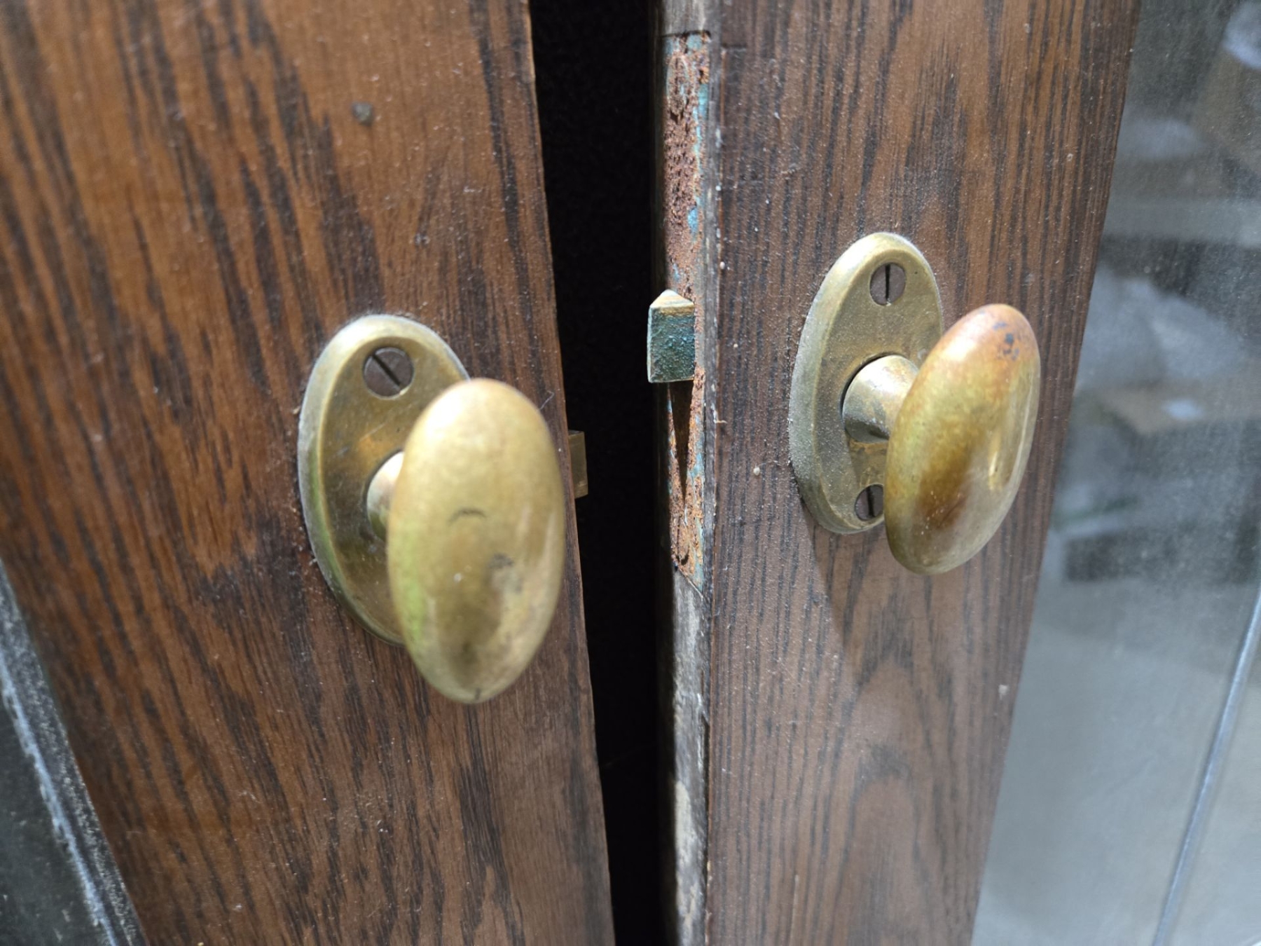 4 Wooden Framed Brass Handled Doors/Windows W/Hinges All Need TLC