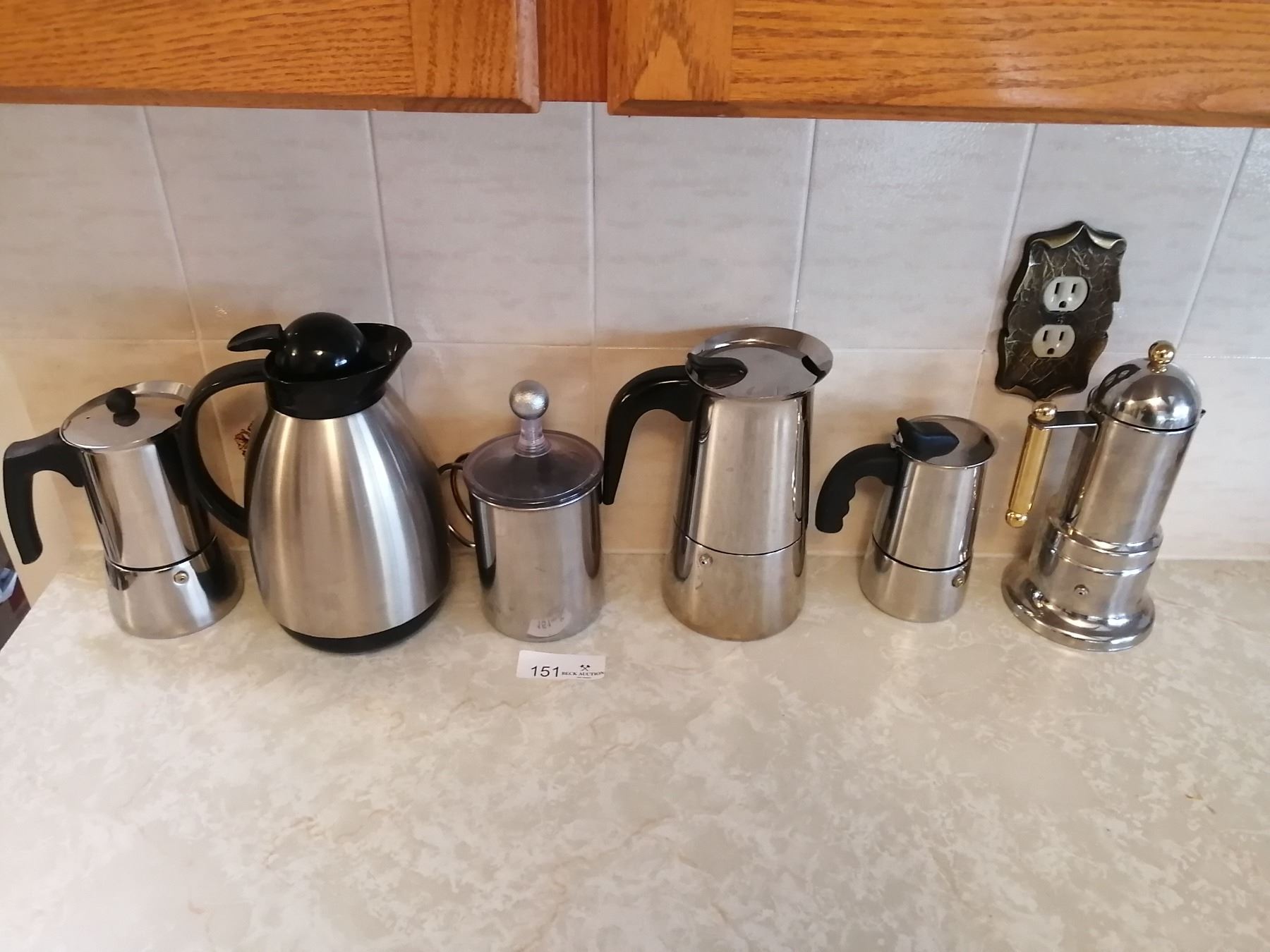4 x Coffee Percolators, Thermos Coffee Carafe, and French Press