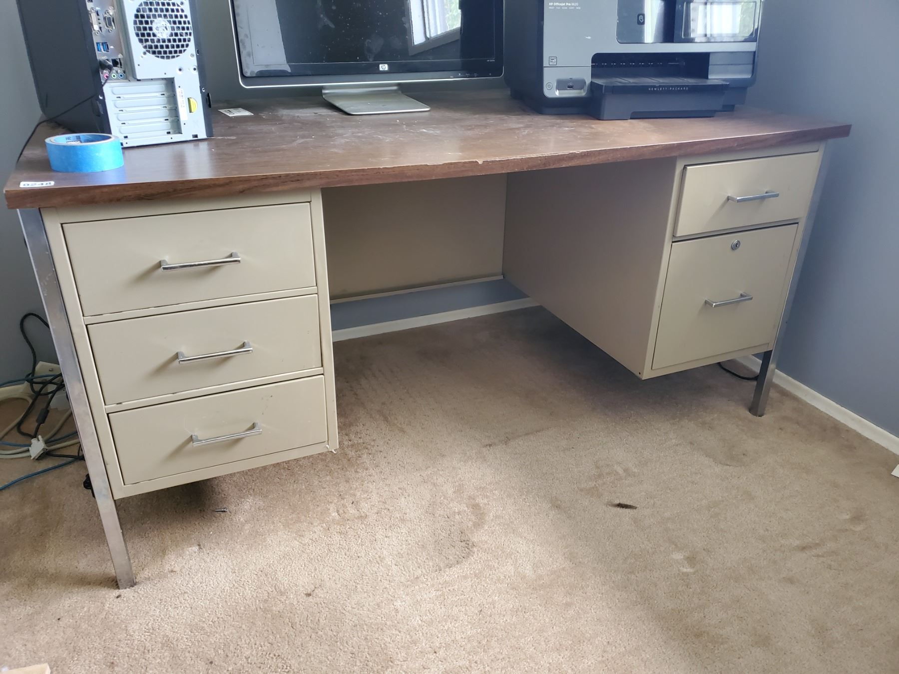 5 Drawer Vintage Wood & Metal Office Desk Size: 60"L x 30"W x 28.5"H