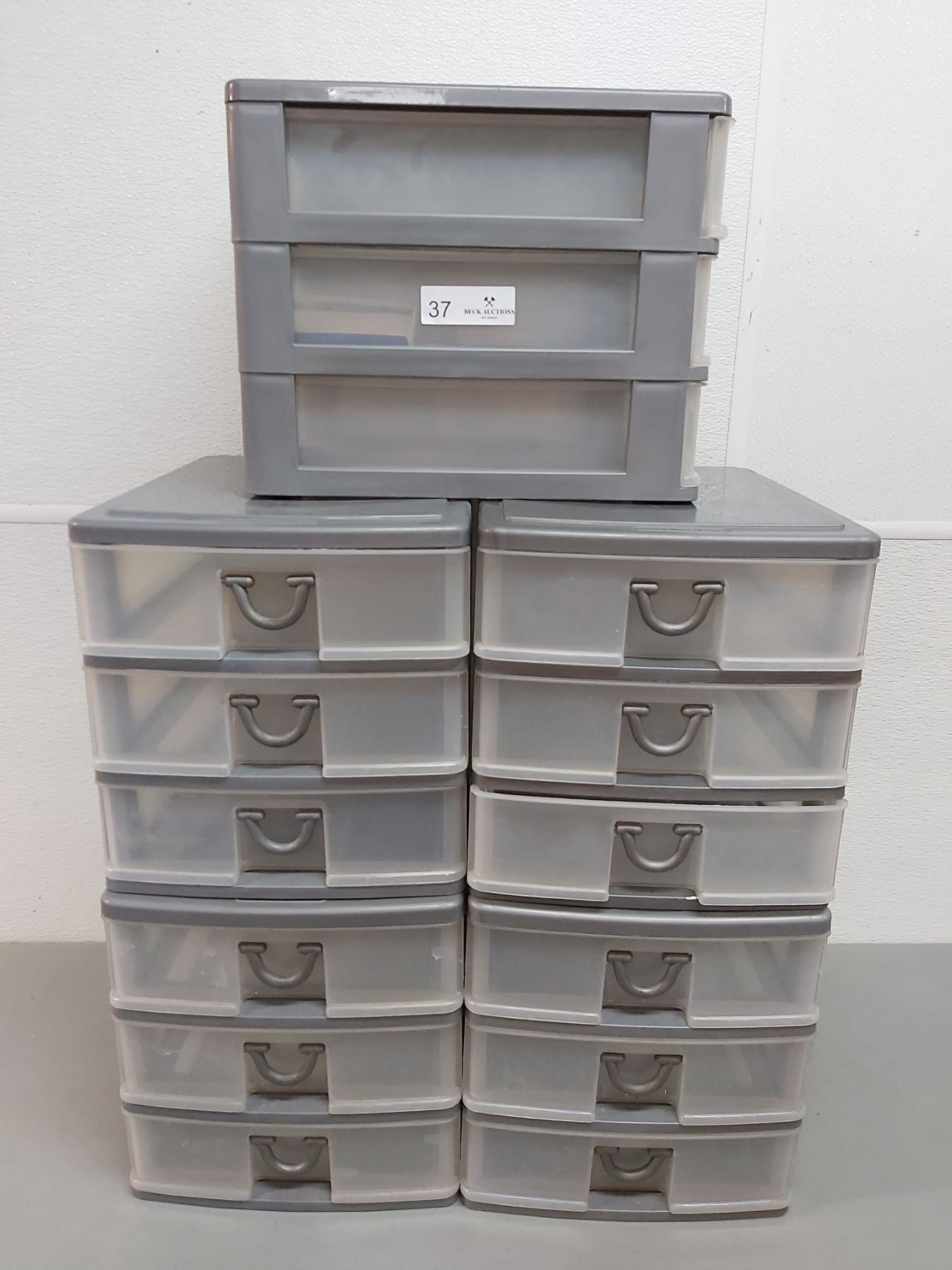 5 Plastic - 3 Drawer Storage Units 10 1/2 Wide x 14 Deep X 11 High
