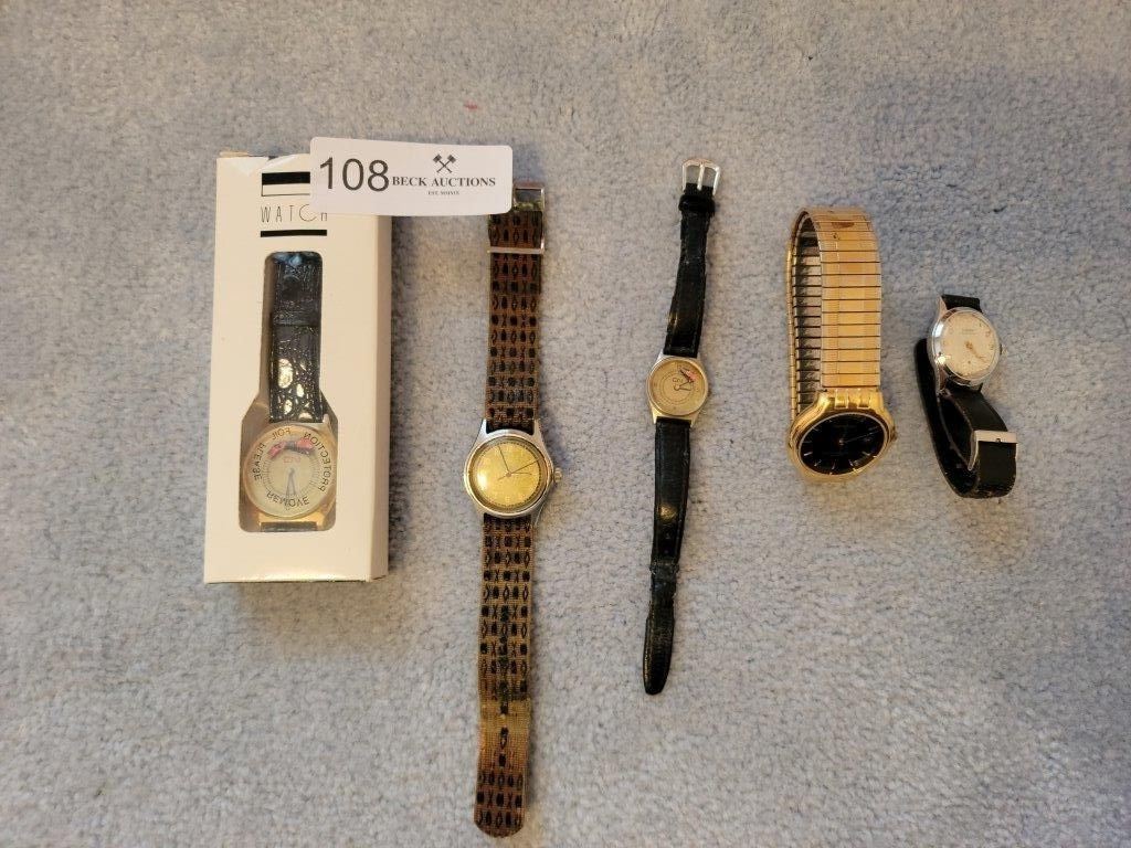 3 men's watches, 2 women's. 2 CN custom watches. Untested