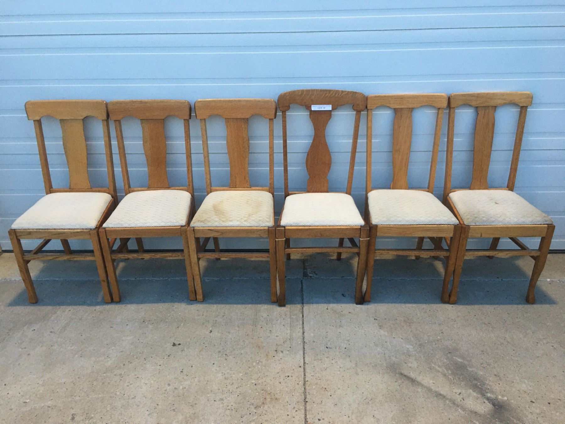 7 Vintage Dining Room Chairs w Ivory Fabric (Some Stains)