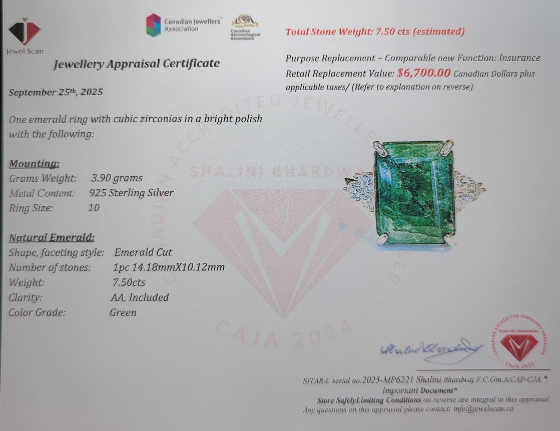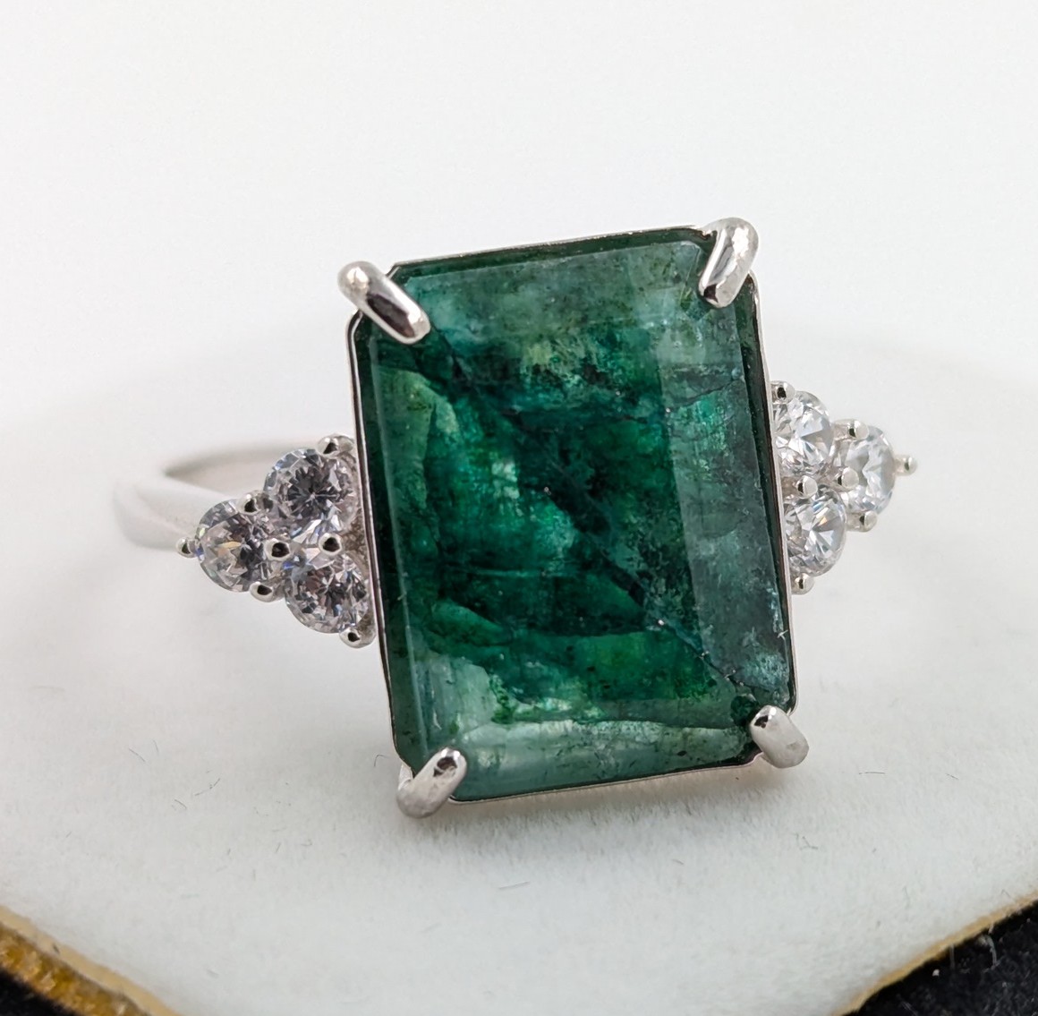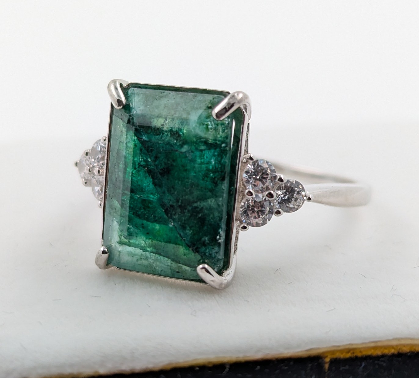 7.5 ct Certified Silver Emerald gemstone Ring ($6,700 Appraisal)
