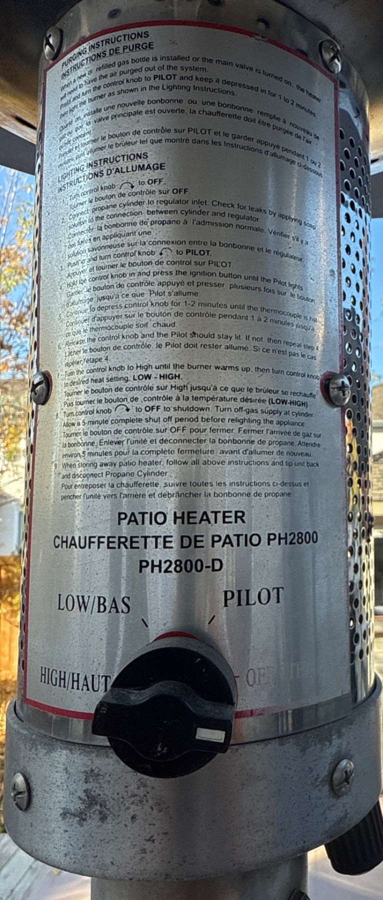 7 foot Tall Propane Patio Heater Comes w/ 20L Propane Bottle Manual Included