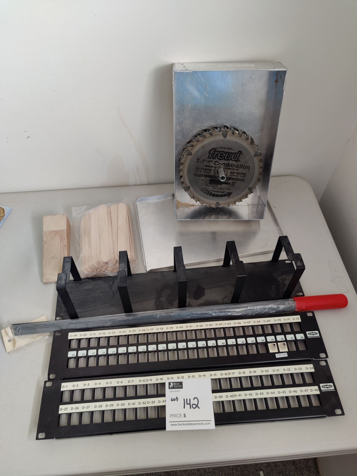 7 x 7" Circular Saw Blades in Metal Case & Assorted Hardware
