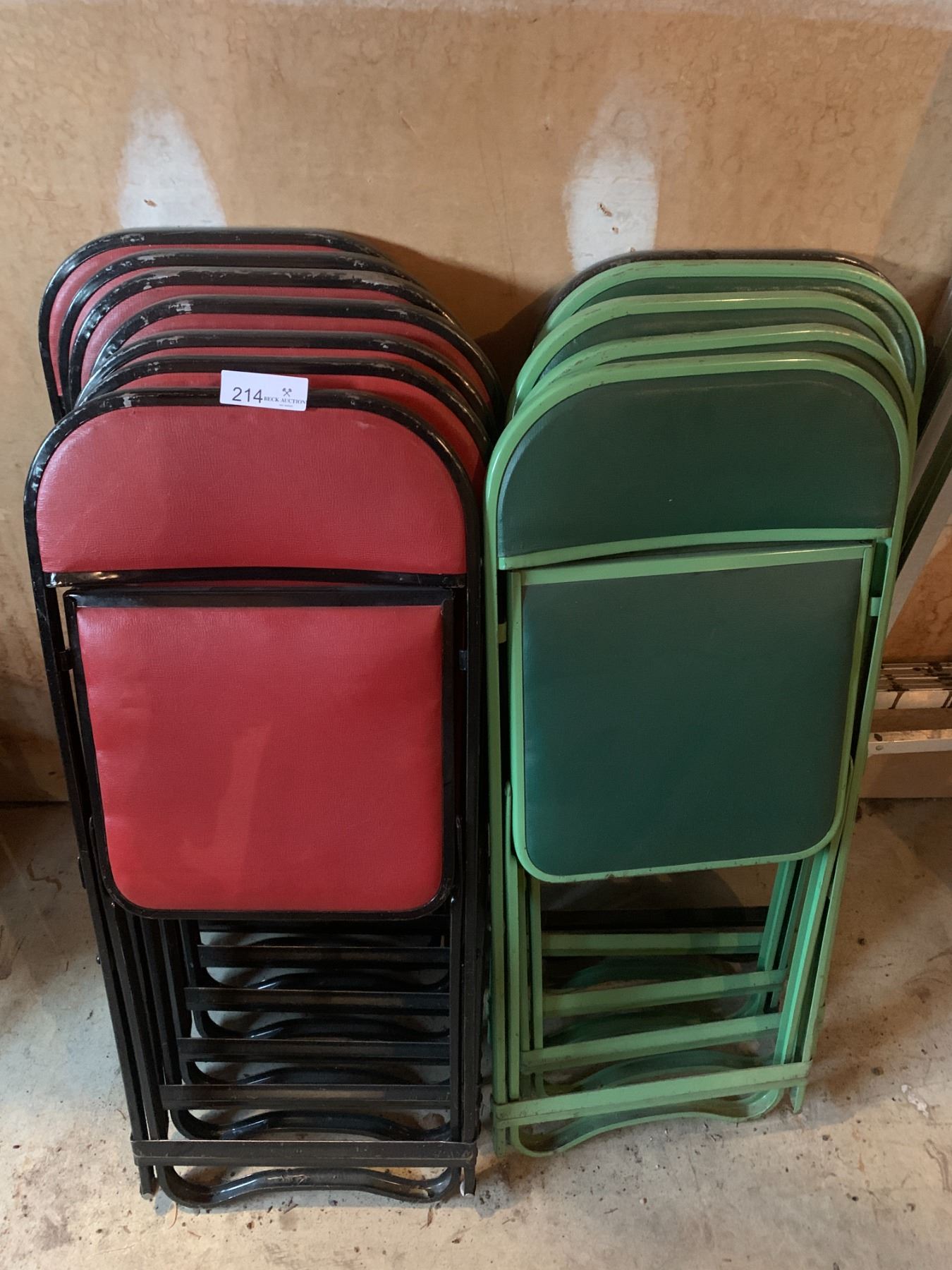 7 x Vintage Red Folding Chairs and 4 x Vintage Green Folding Chairs