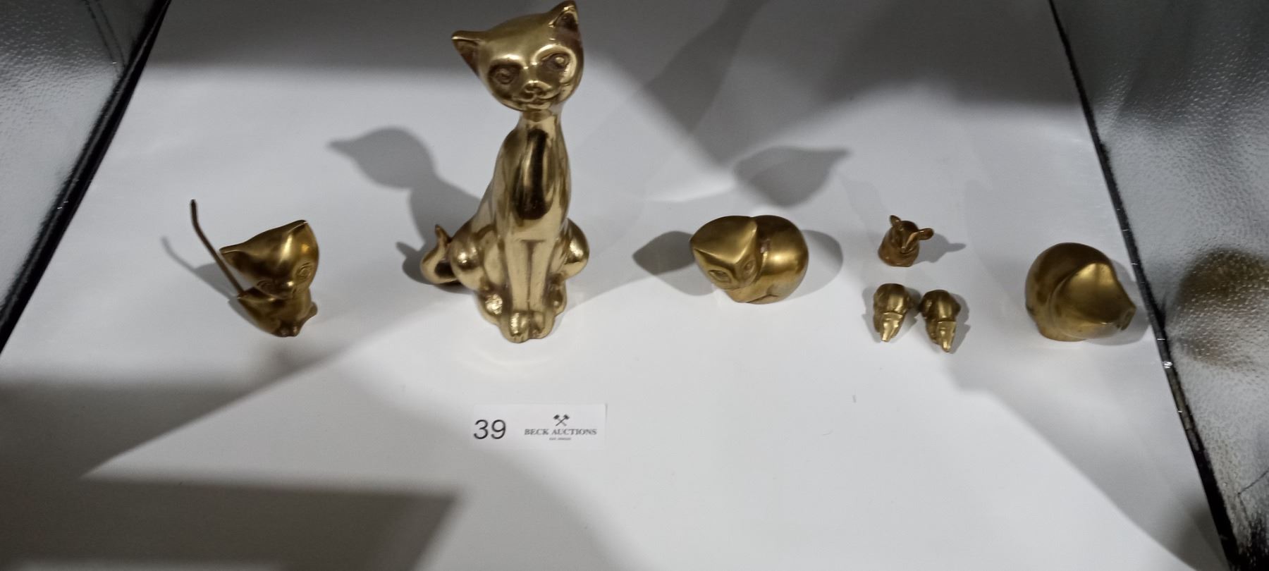 8 Animal(5 Cats/3 Mice) Themed Brass Figurines.