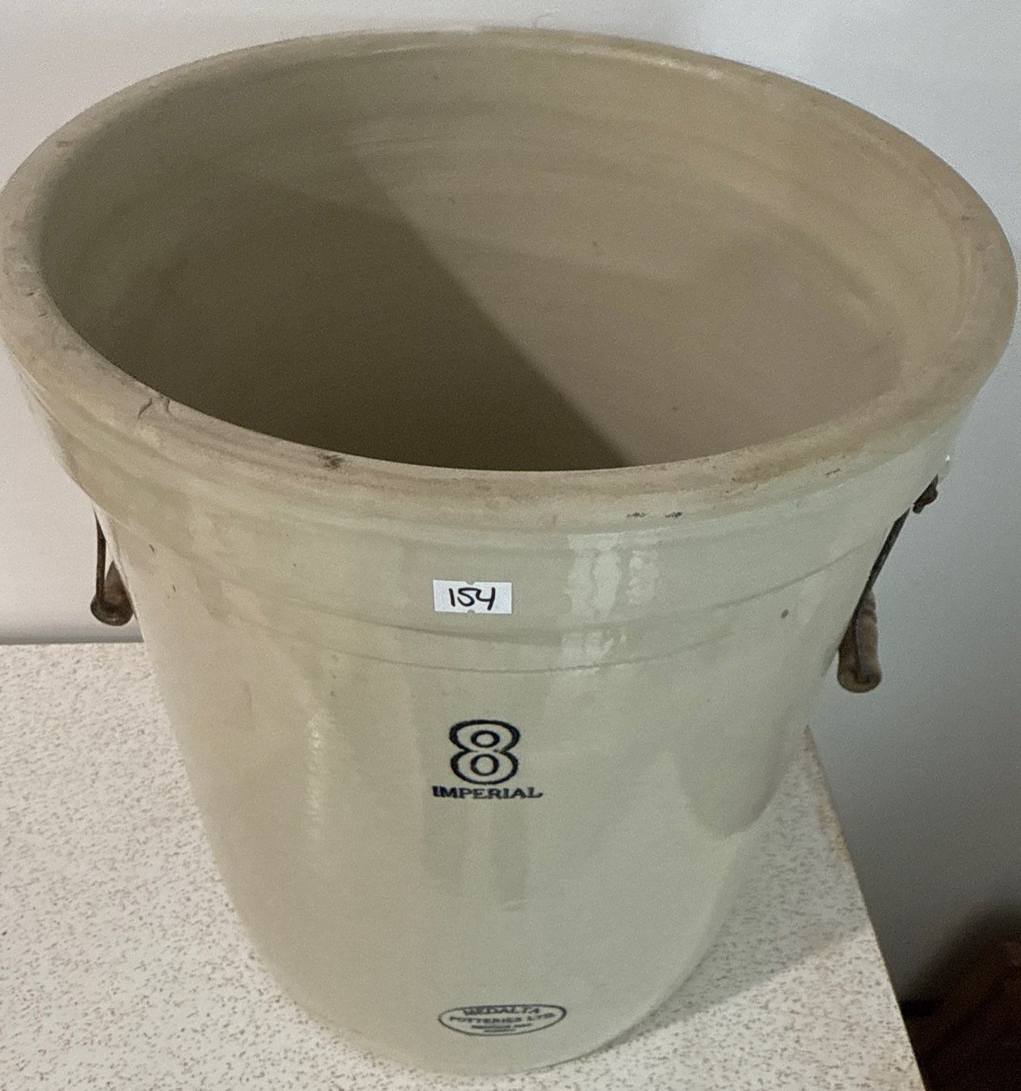 #8 Medalta Potteries Medicine Hat With Metal Handles Crock 18T