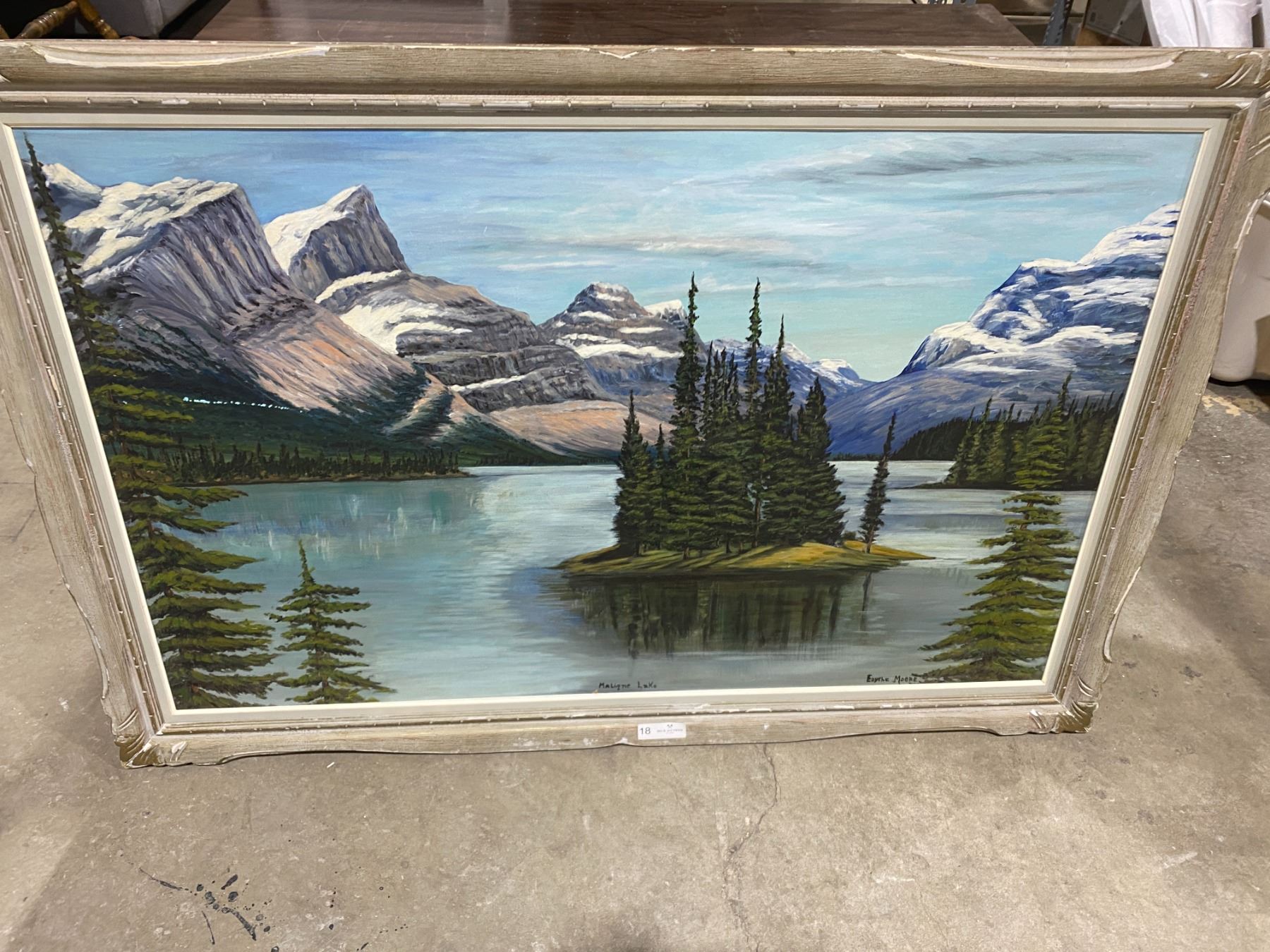 A gorgeous vintage painting, containing a beautiful vista, by Edythe Moore.