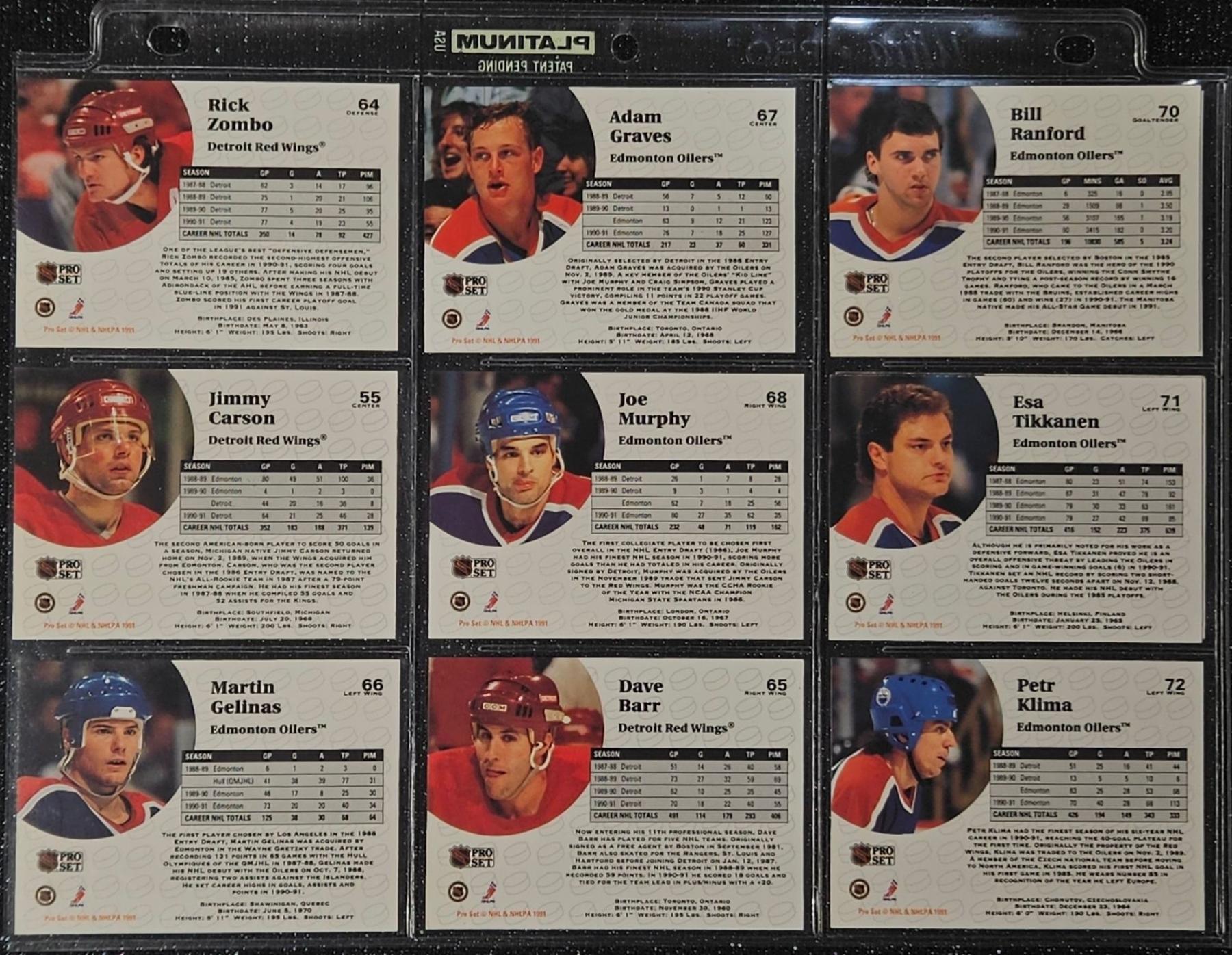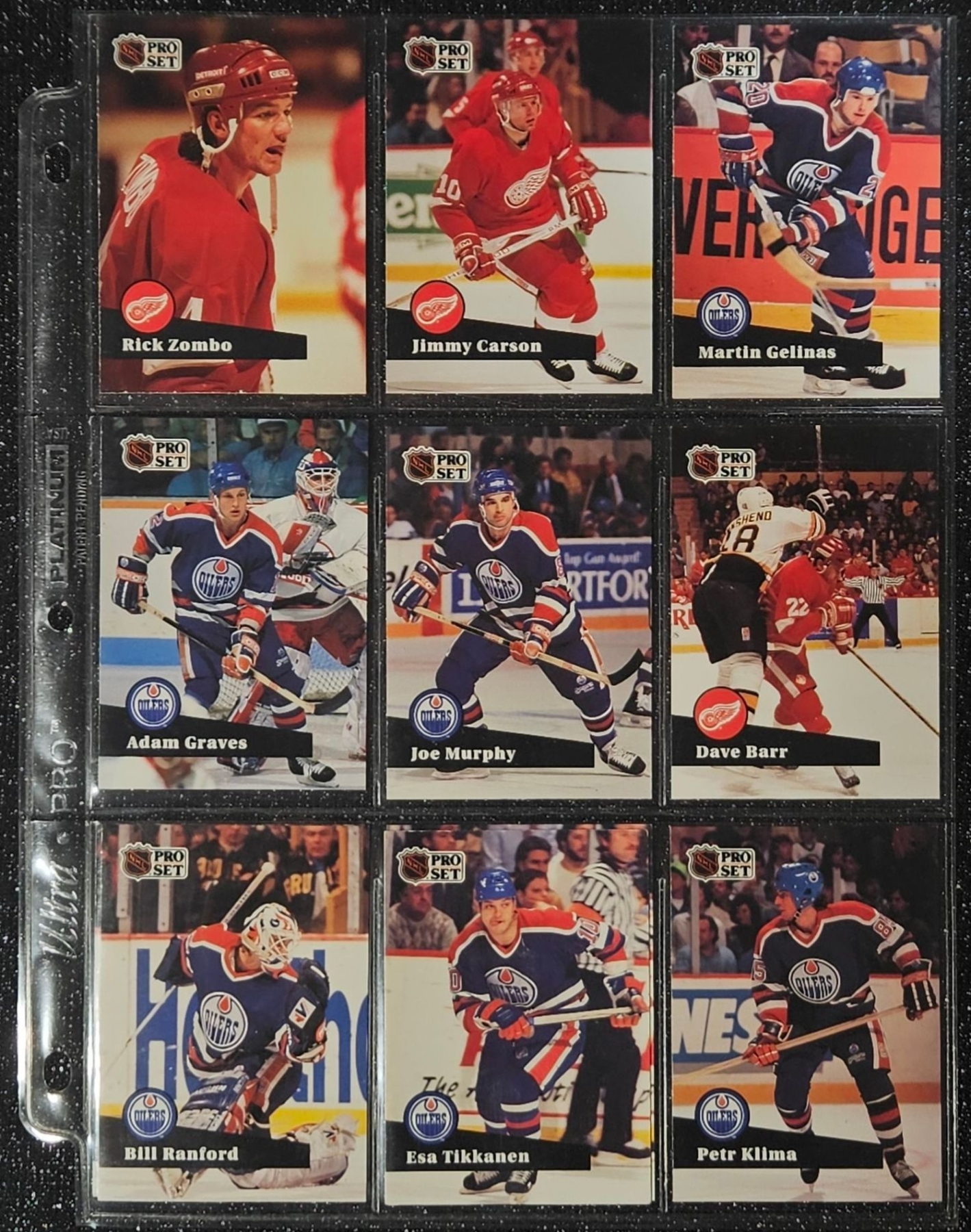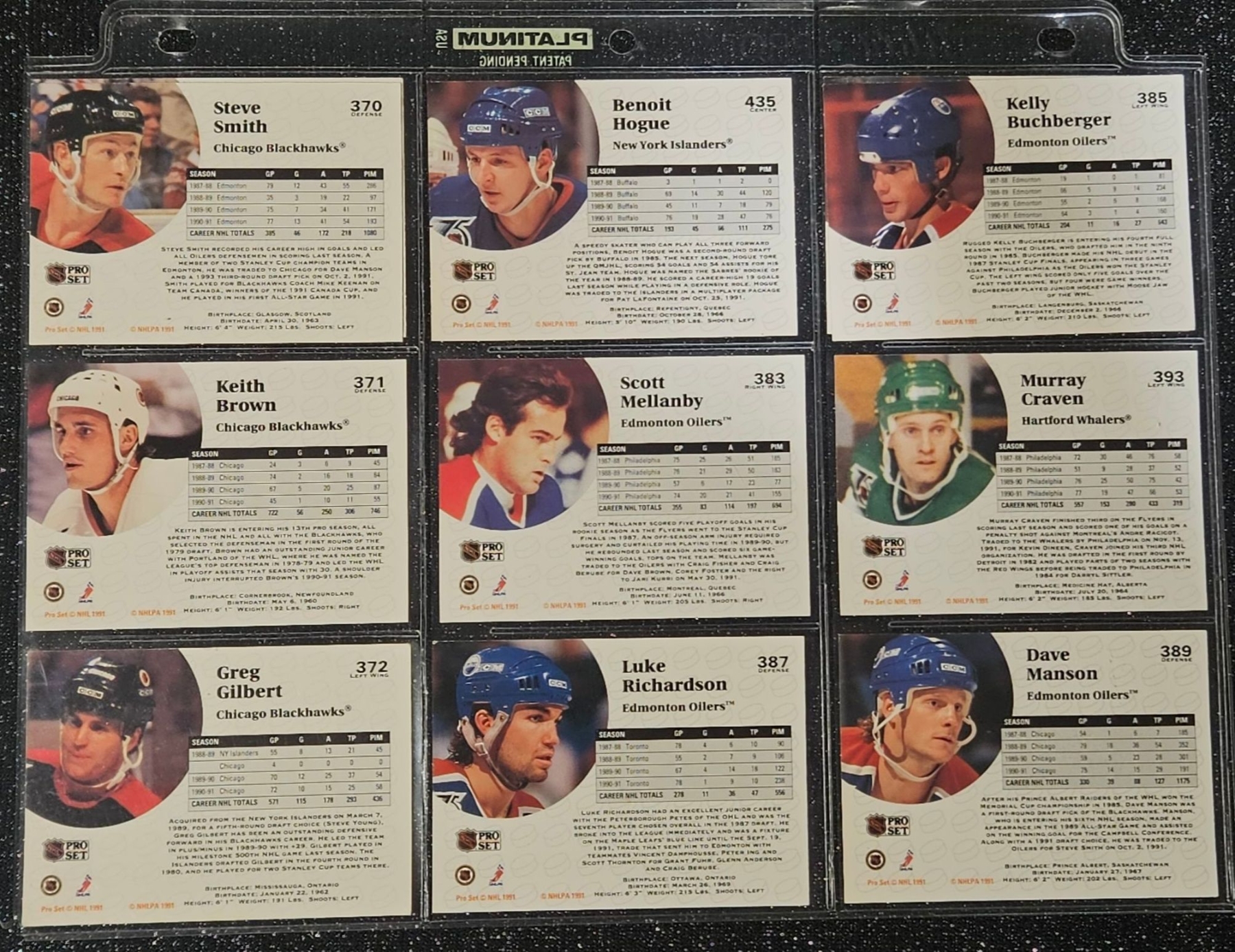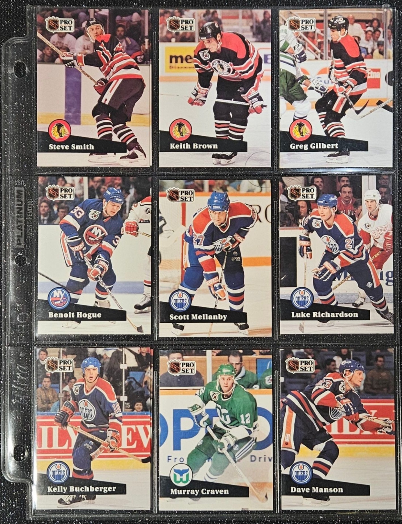 This Set highlights Players From The Post-Gretzky Era of the Oilers Franchise. Players Including Steve Smith, Keith Brown, Greg Gilbert, Benoit Hogue and Others. In a Protective Plastic Bind Sheet ( 10 sheets in total)