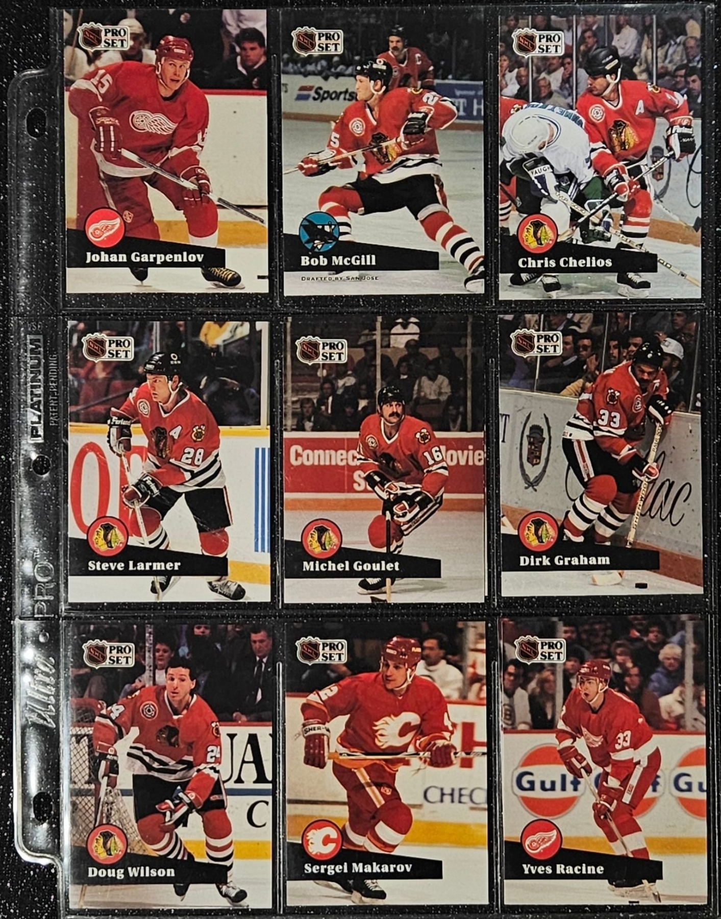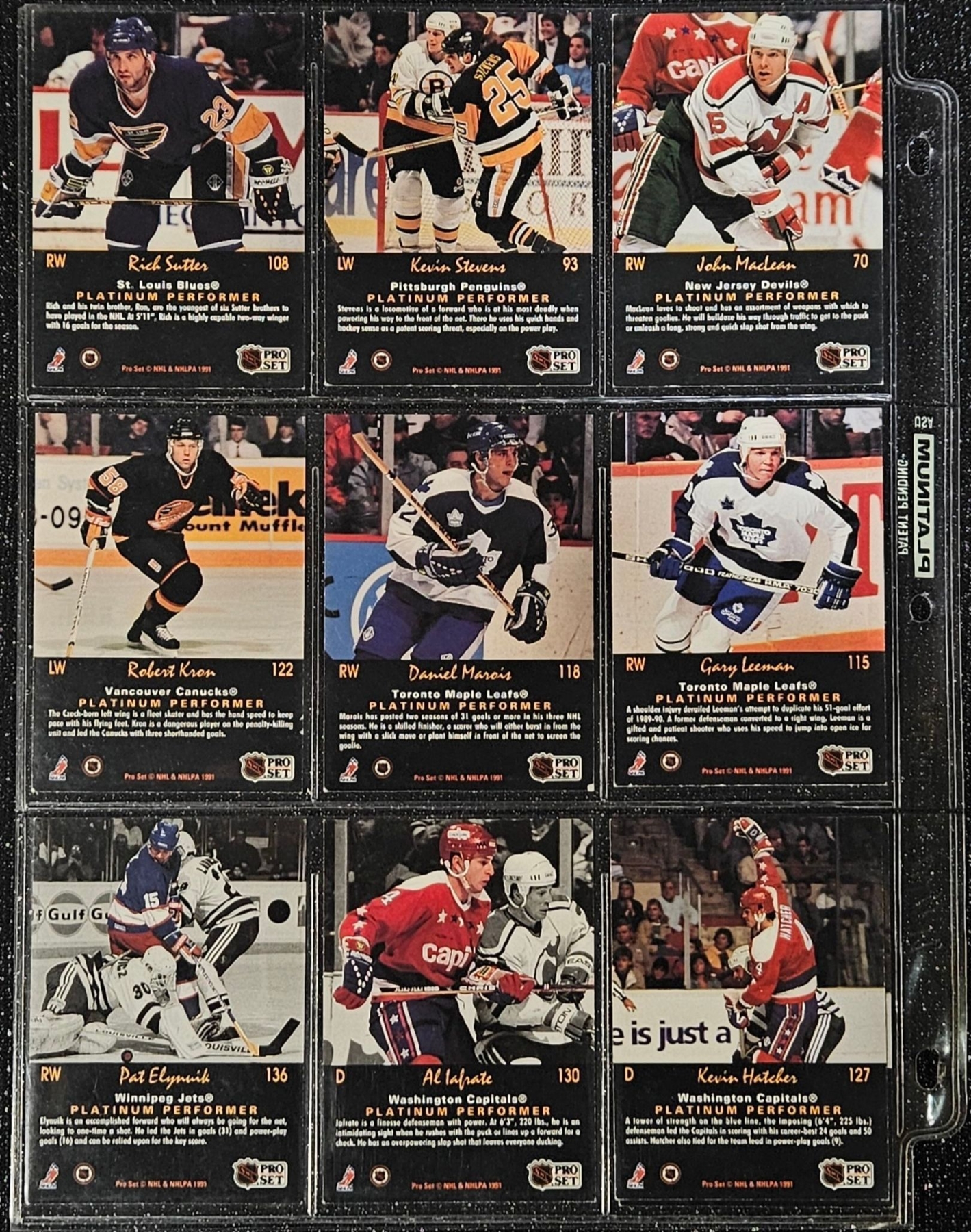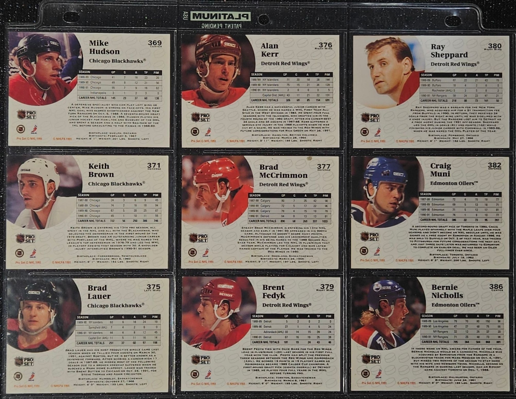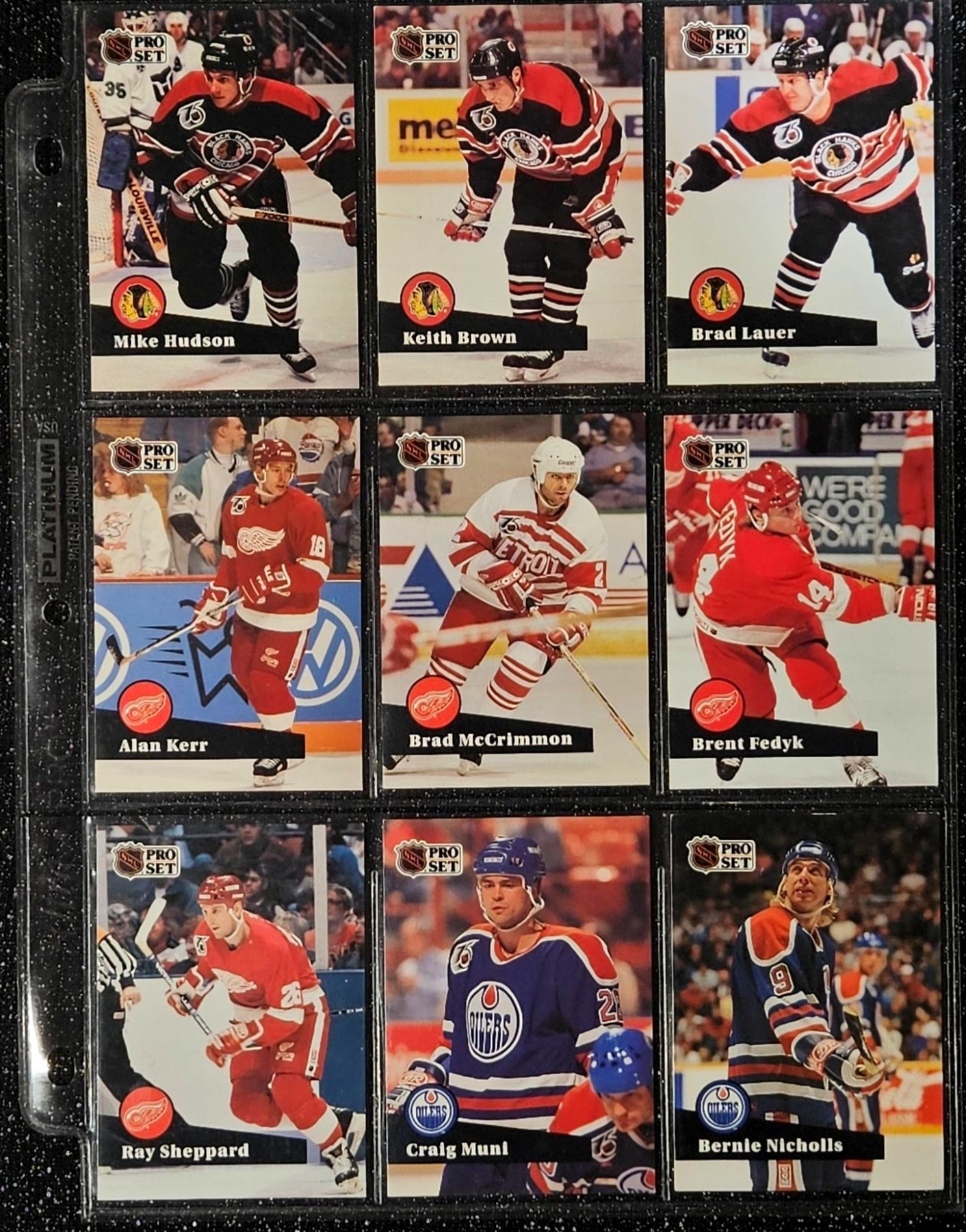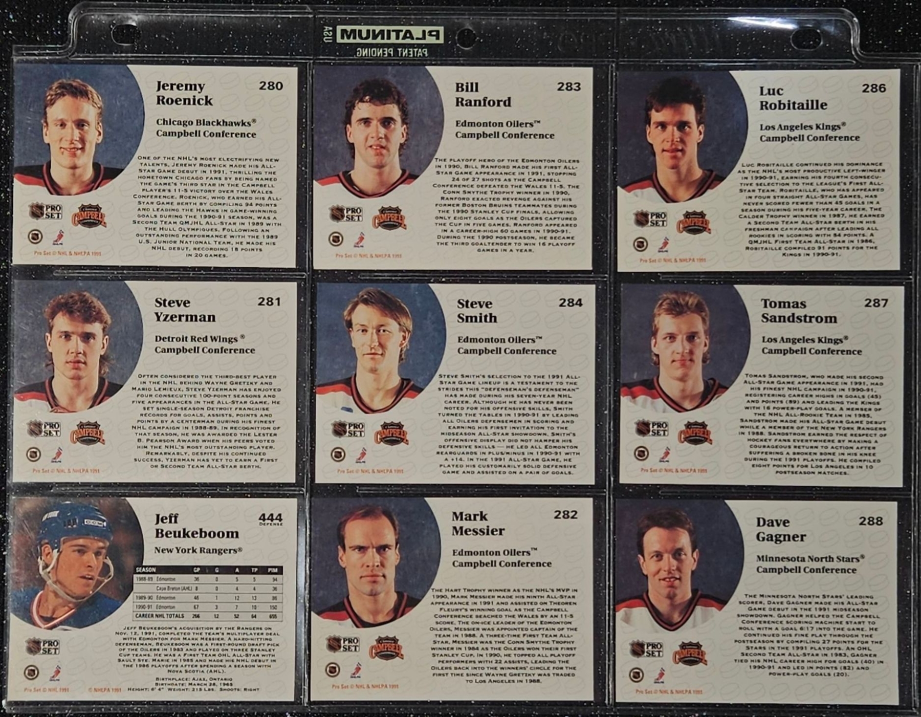 This Set highlights Players From The Post-Gretzky Era of the Oilers Franchise. Players Including Steve Smith, Keith Brown, Greg Gilbert, Benoit Hogue and Others. In a Protective Plastic Bind Sheet ( 10 sheets in total)