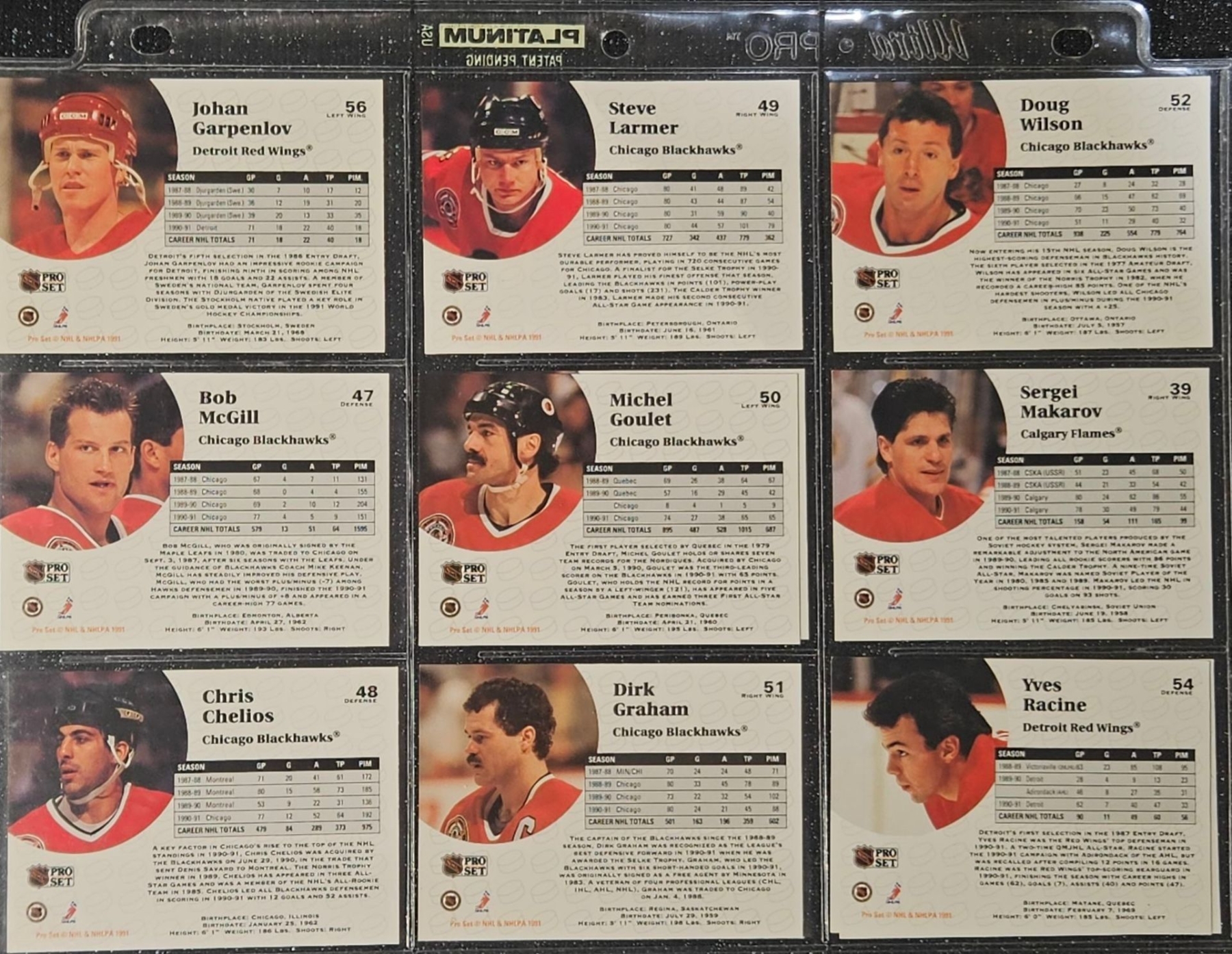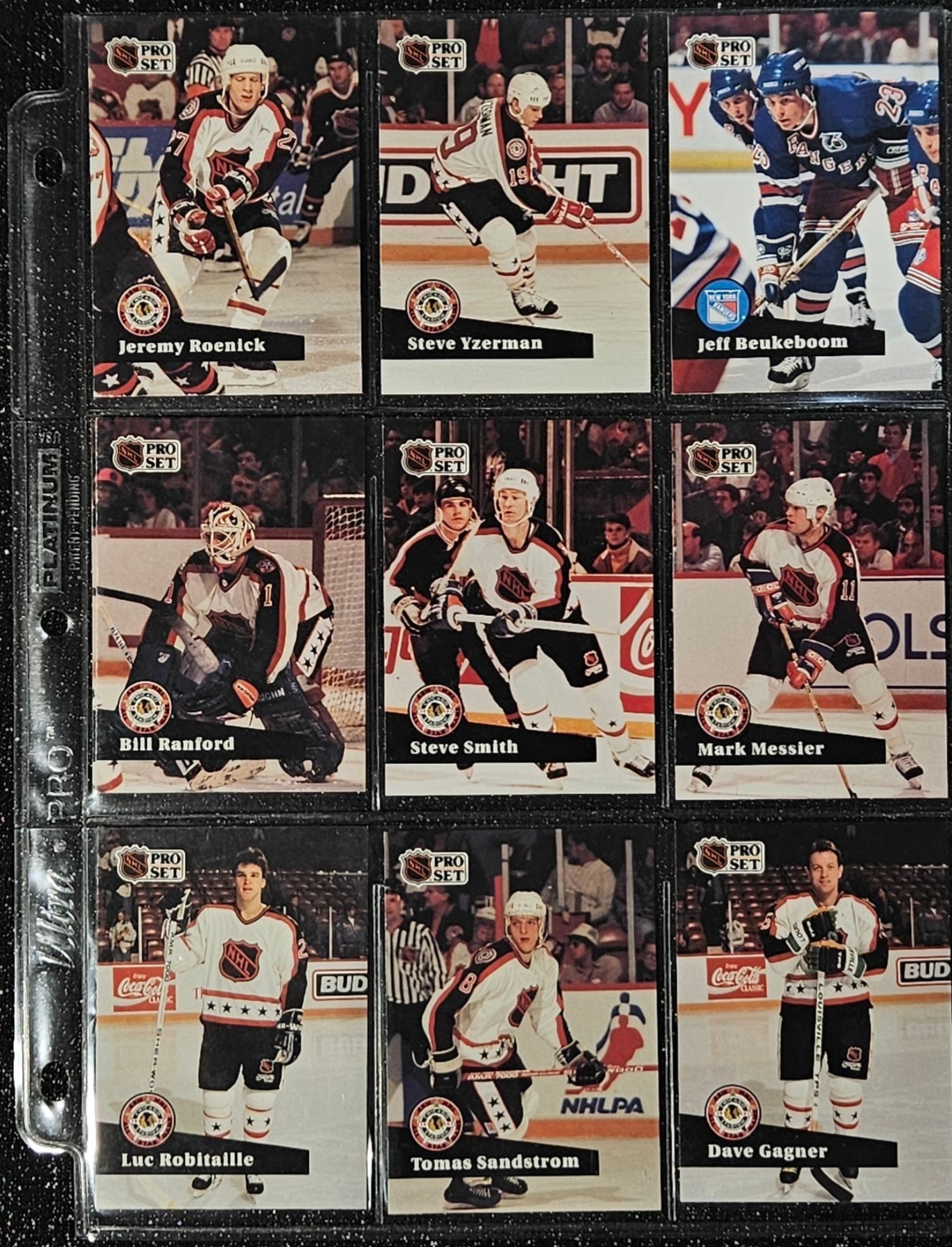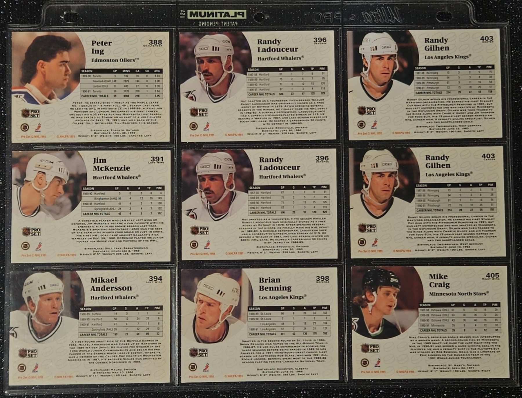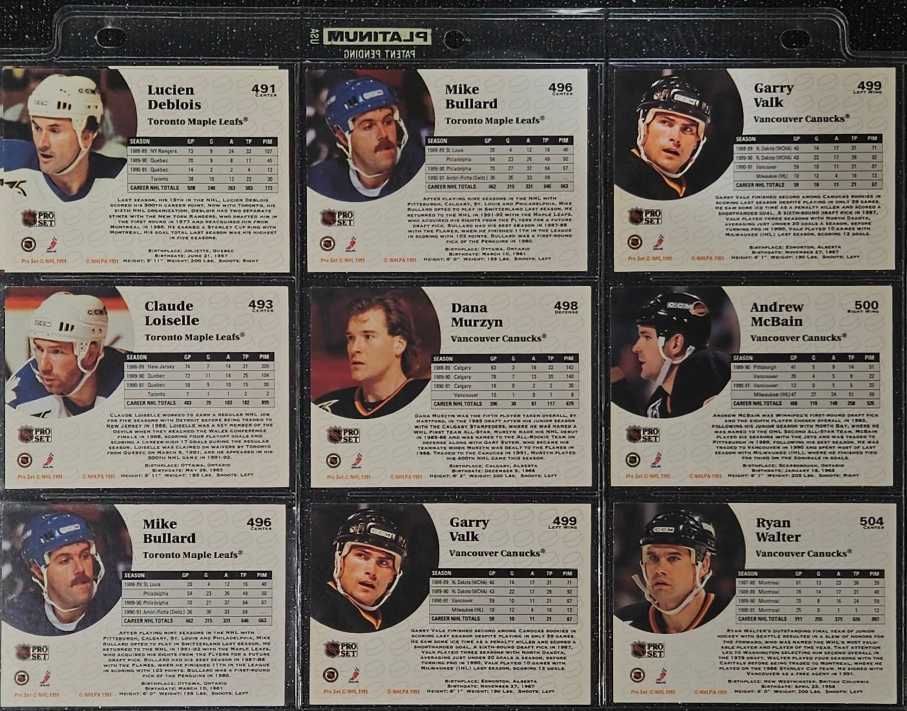 This Set highlights Players From The Post-Gretzky Era of the Oilers Franchise. Players Including Steve Smith, Keith Brown, Greg Gilbert, Benoit Hogue and Others. In a Protective Plastic Bind Sheet ( 10 sheets in total)